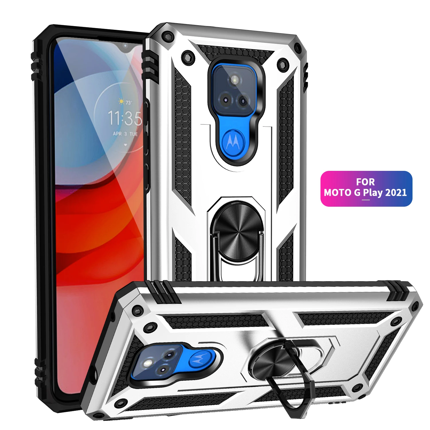 Comprar Funda para Moto G Play para teléfono Moto G Play 2021, armadura a prueba de golpes, soporte protector militar resistente para coche, funda magnética