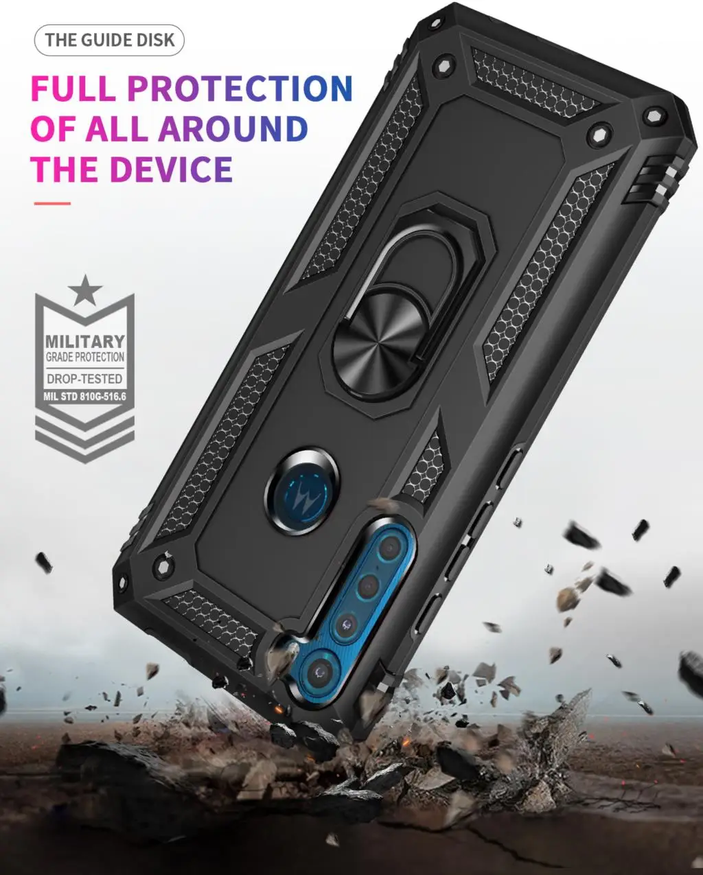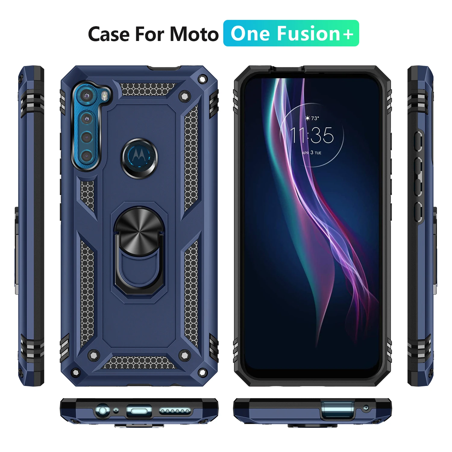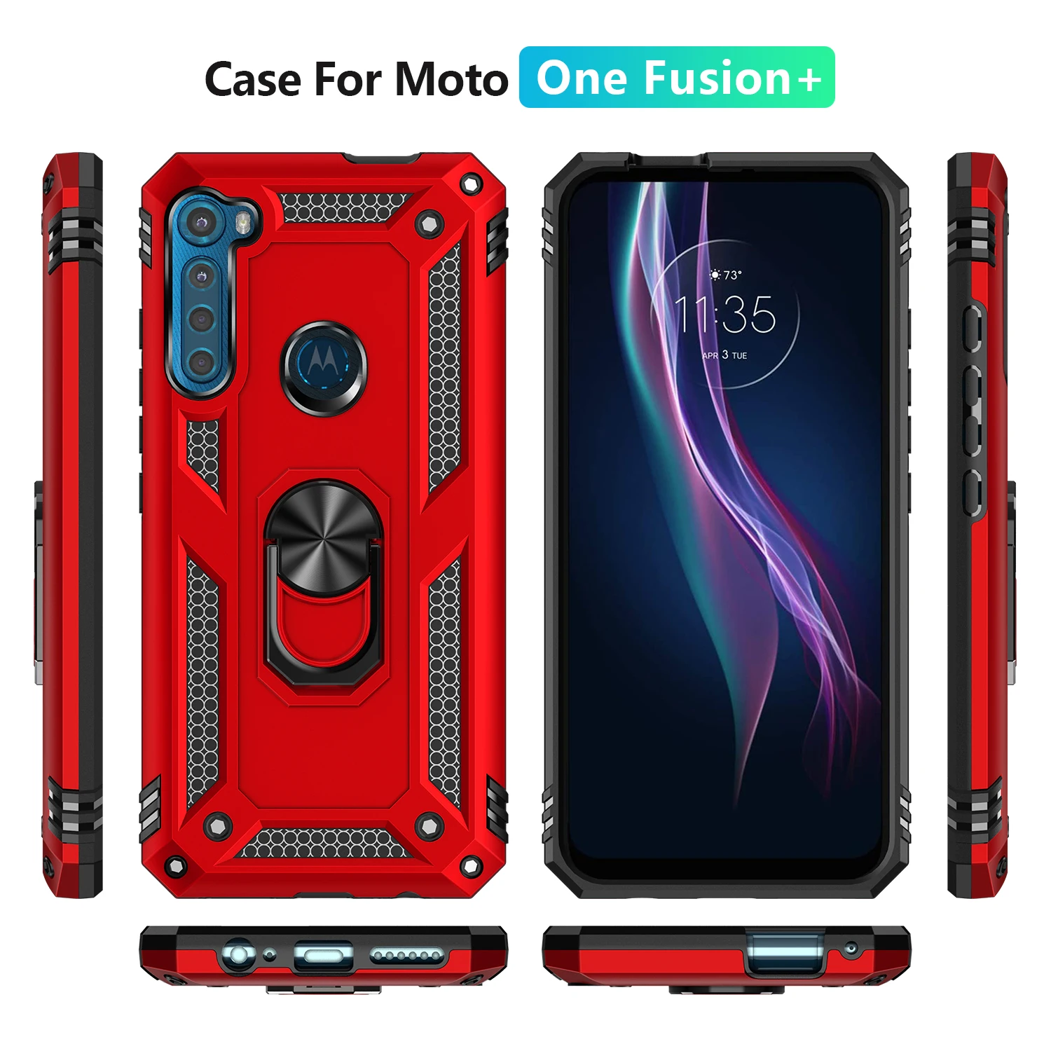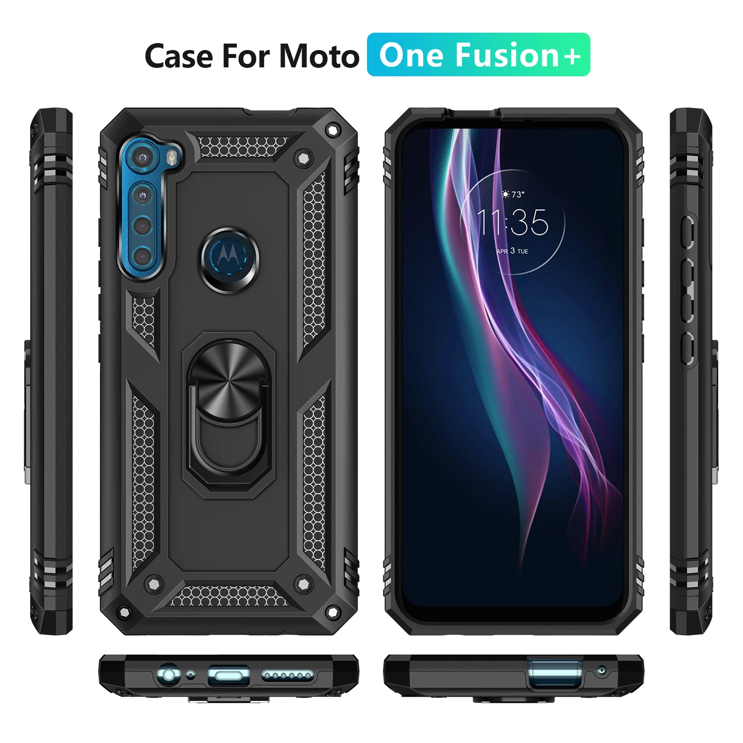Comprar Funda para Moto Motorola Armor, carcasa resistente militar a prueba de golpes, soporte magnético para coche, anillo, para One Fusion + Plus