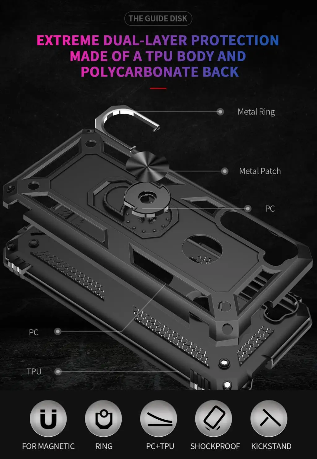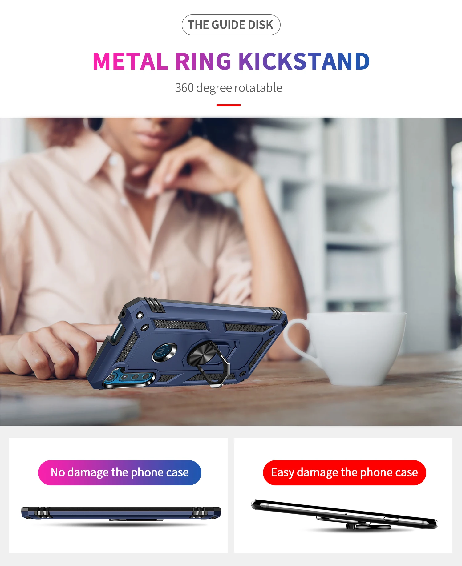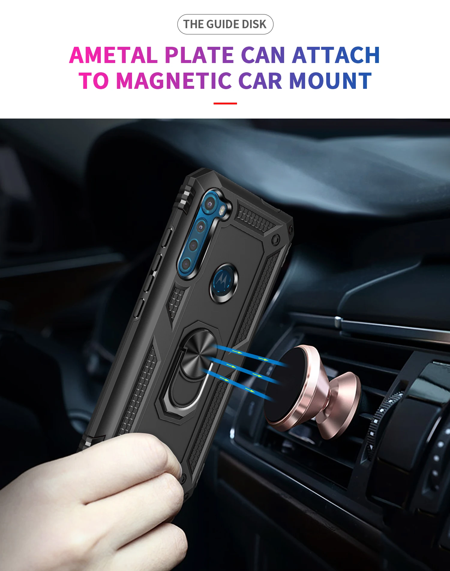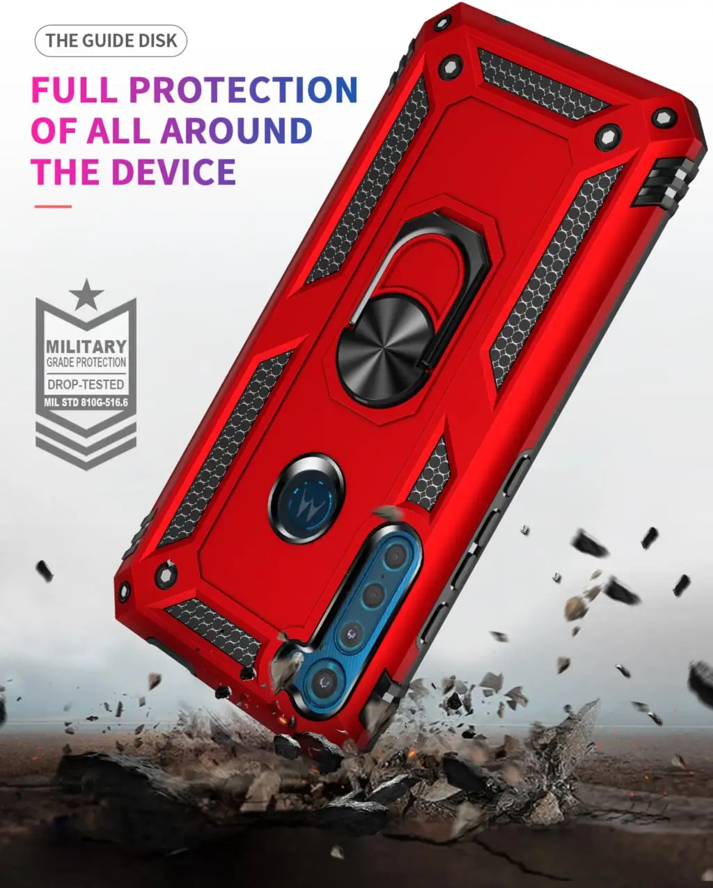 Comprar Funda para Moto Motorola Armor, carcasa resistente militar a prueba de golpes, soporte magnético para coche, anillo, para One Fusion + Plus