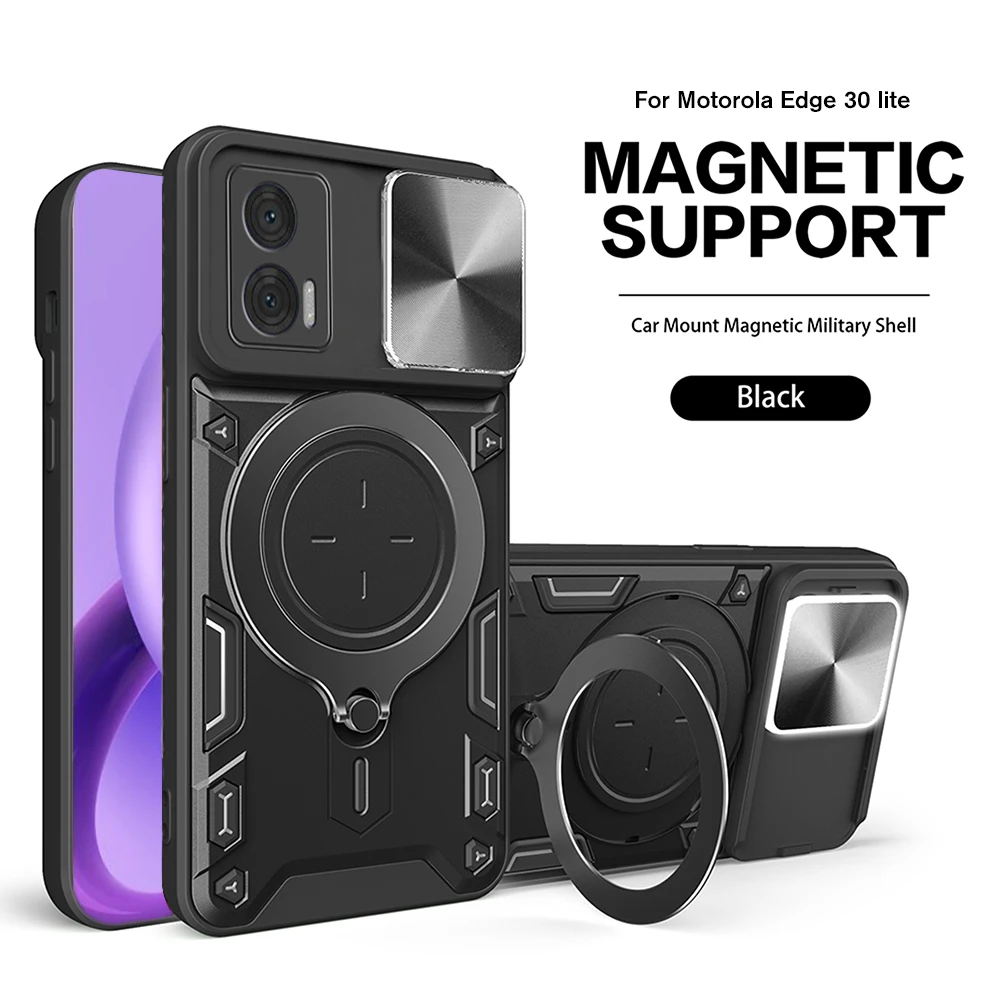 Para Motorola Edge 30 Neo Lite Case Push Camera Funda a prueba de golpes Moto X30 S30 Pro Edge30 Ultra Fusion Car Magnet Ring Stand Capas