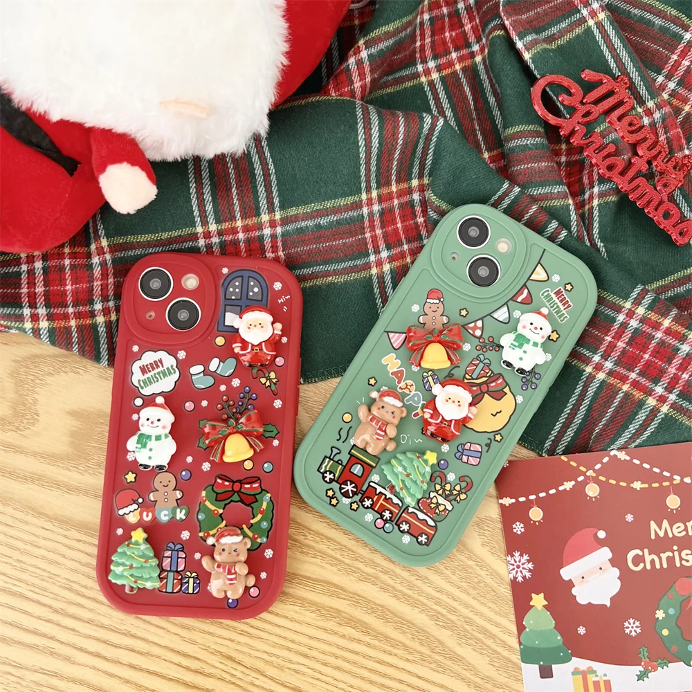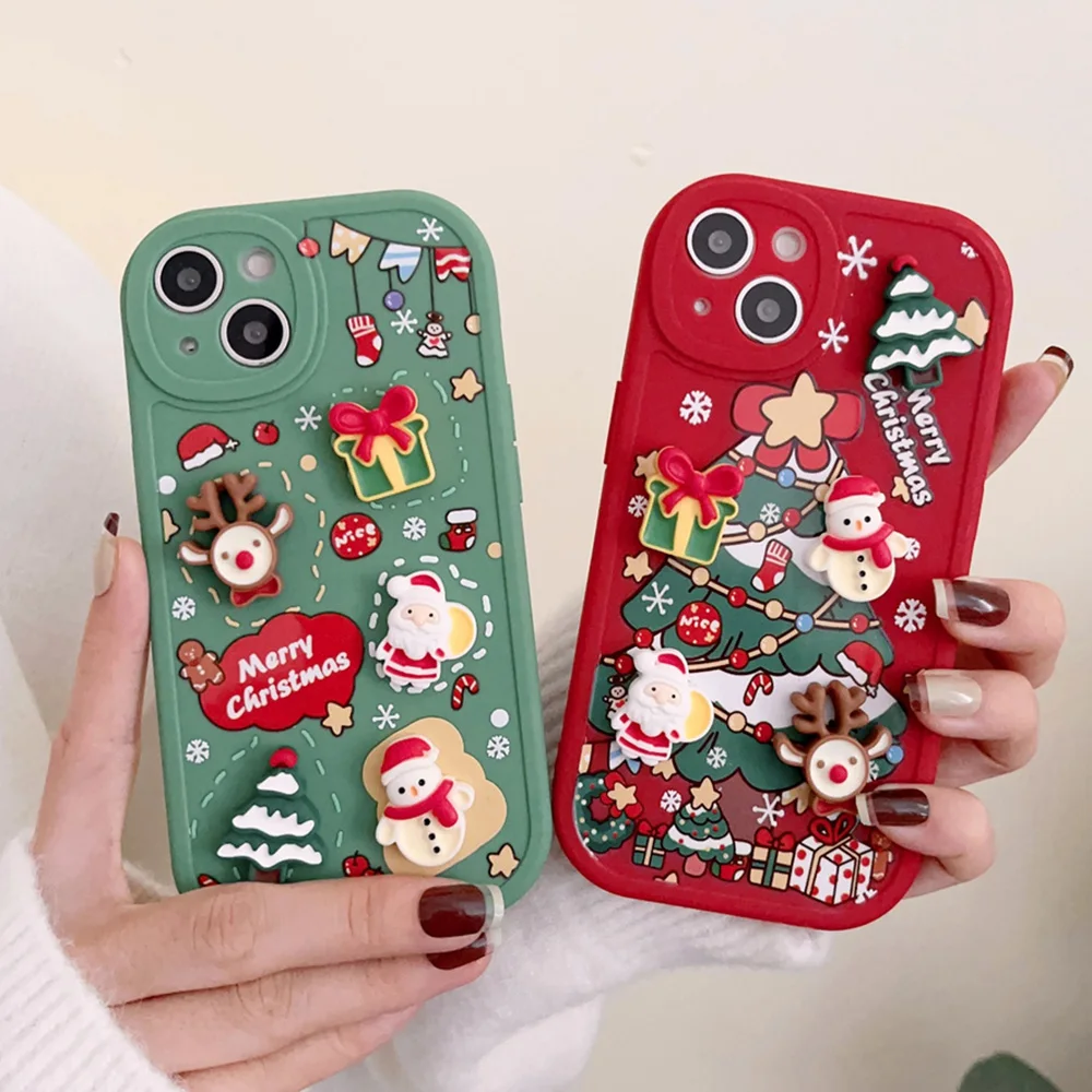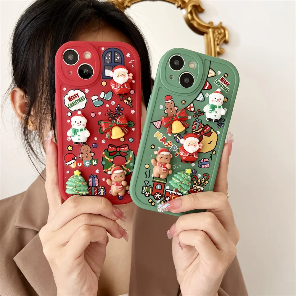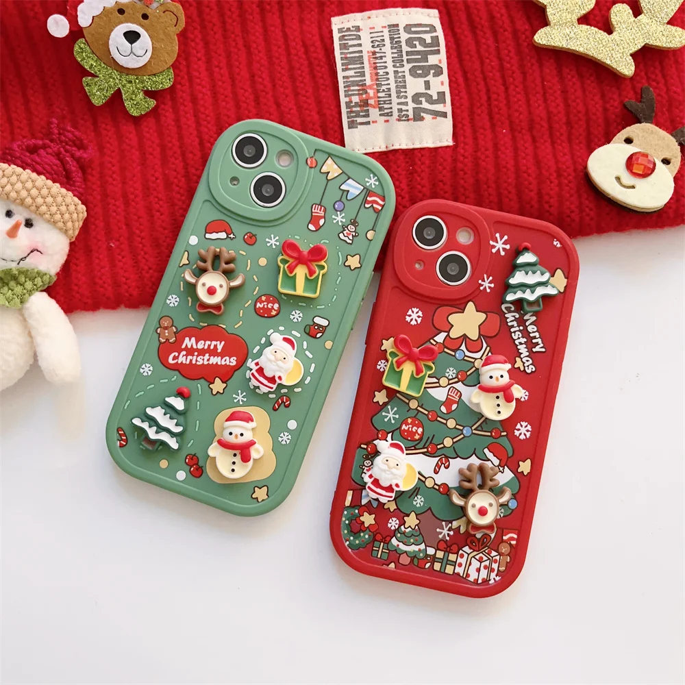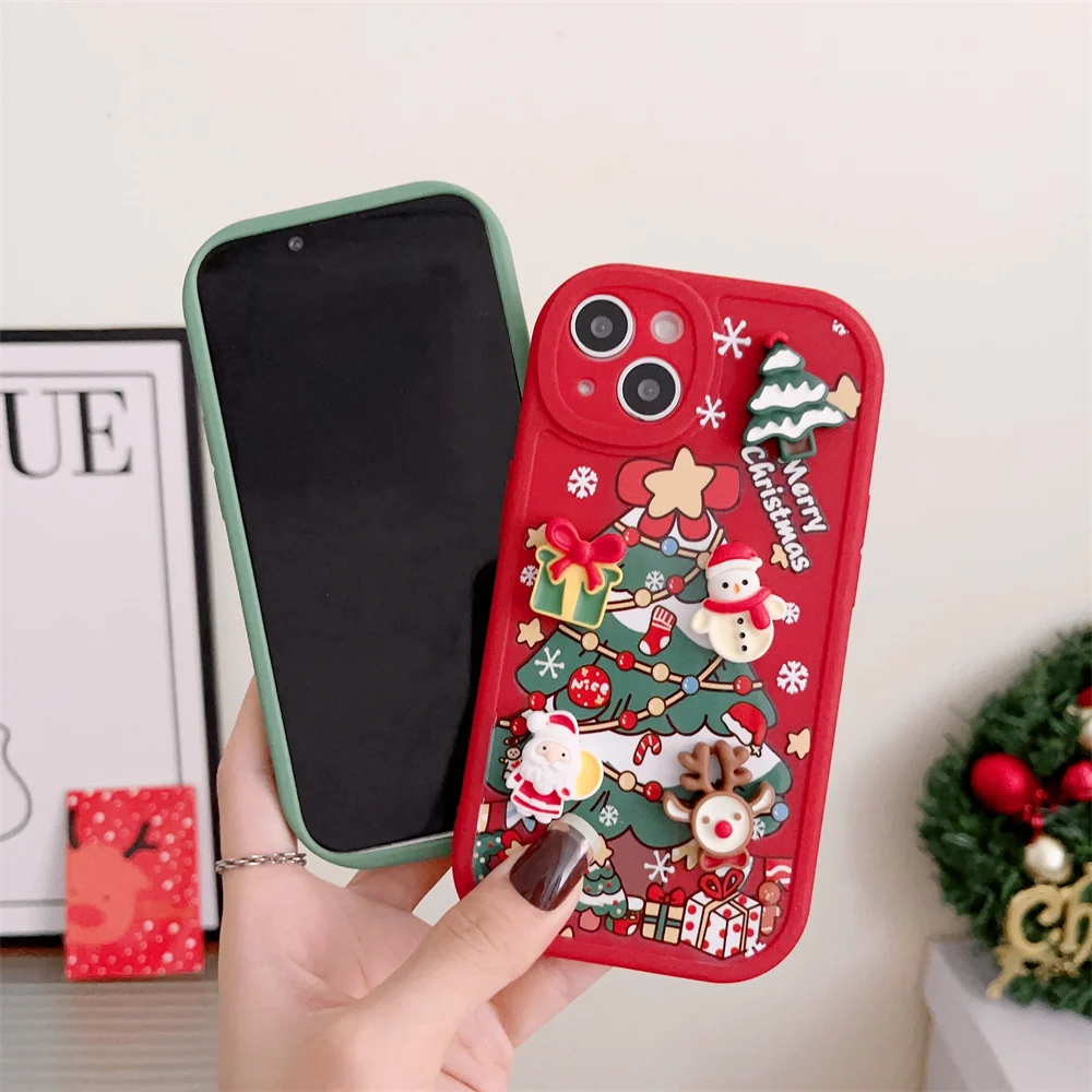 Funda de Navidad con dibujos animados en 3D para iPhone, carcasa suave con protección de lente para iPhone 15 Pro, 11, 12, 13, 14, 15 Plus, XS Max, XR, X, 7, 8 Plus