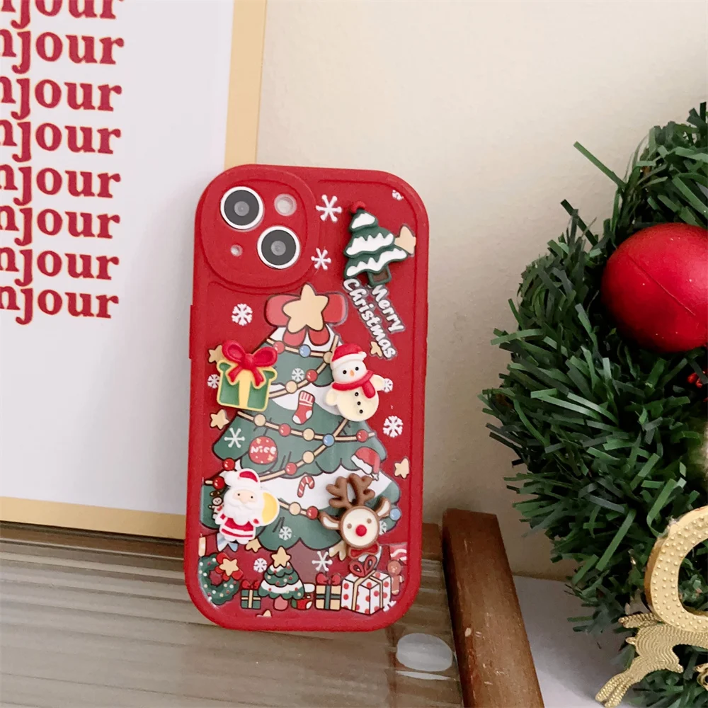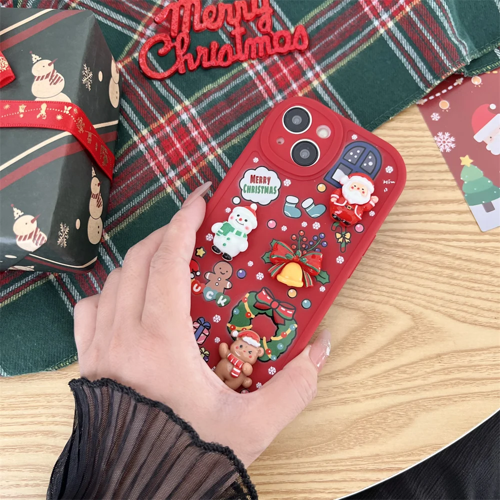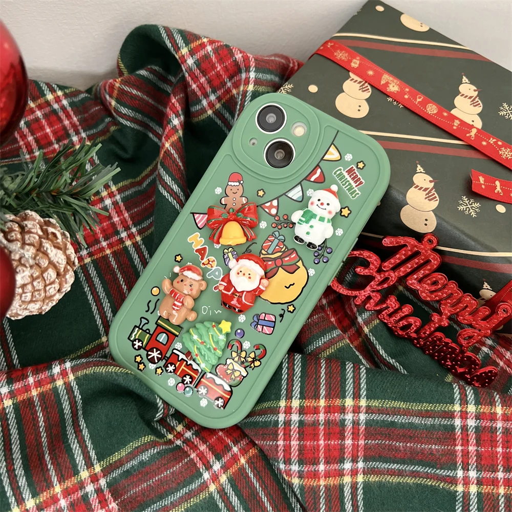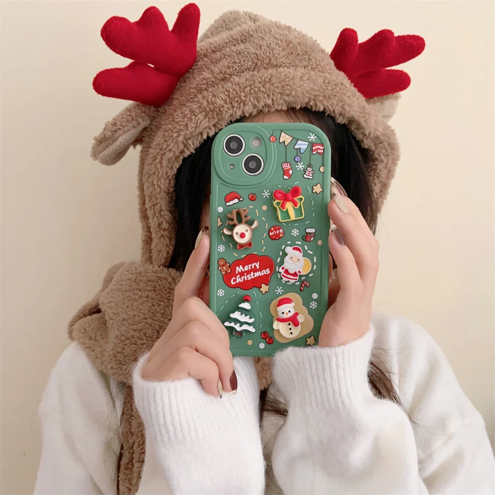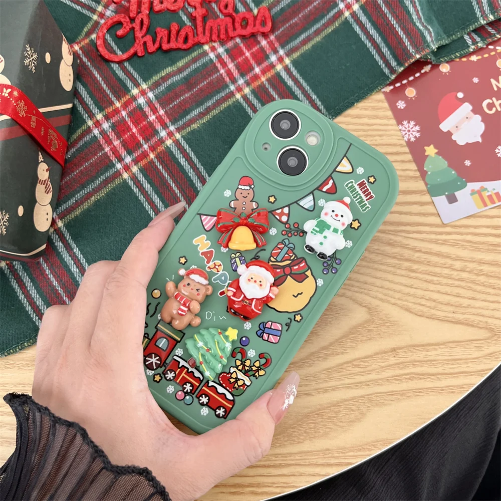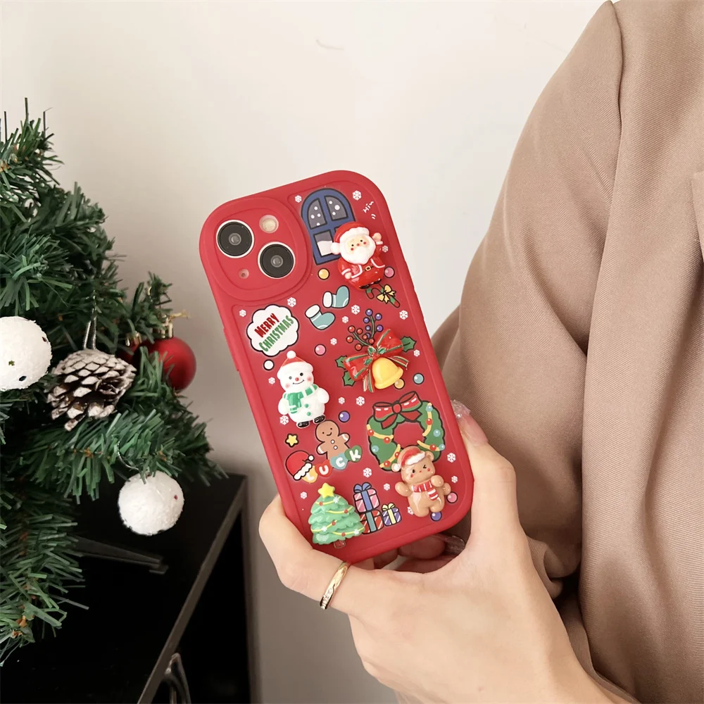 Funda de Navidad con dibujos animados en 3D para iPhone, carcasa suave con protección de lente para iPhone 15 Pro, 11, 12, 13, 14, 15 Plus, XS Max, XR, X, 7, 8 Plus