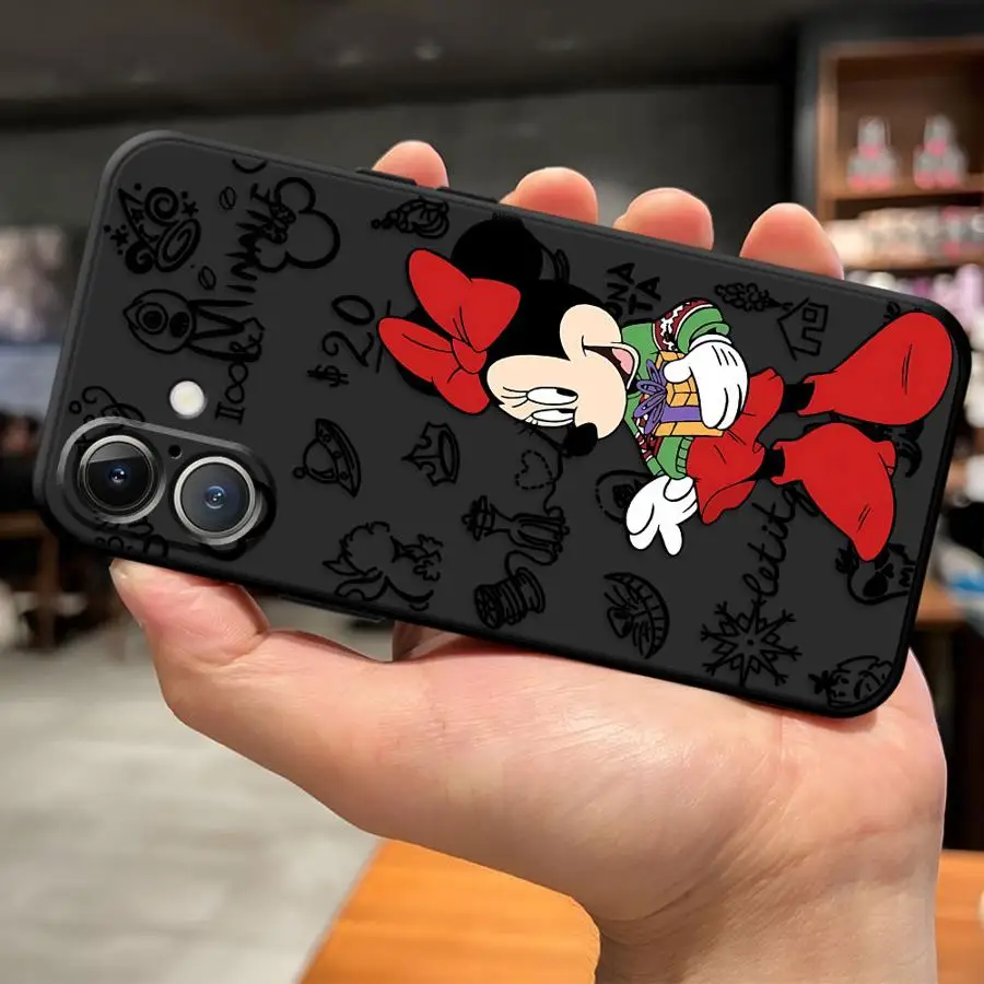 Funda navideña de Mickey Minnie para iPhone 15 16 14 Plus 7 8 XR 13 12 11 17 Pro Max XS Max 17Air, funda suave negra para teléfono - imagen 1