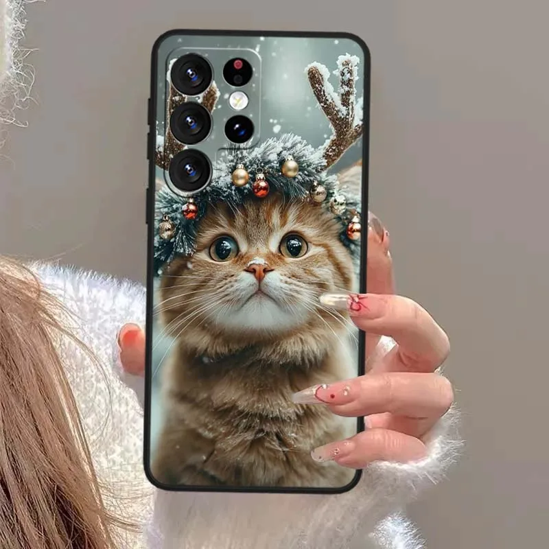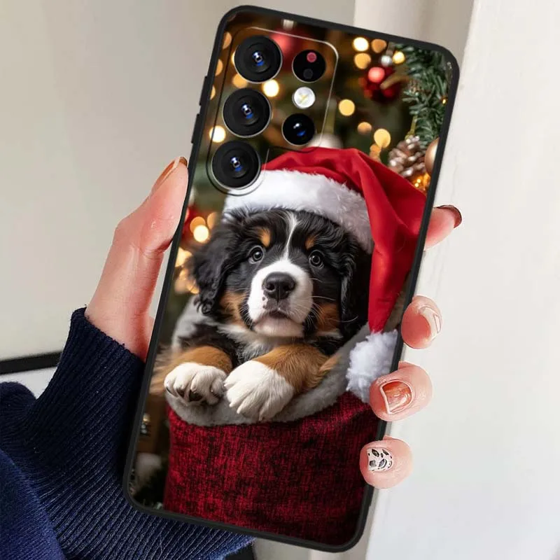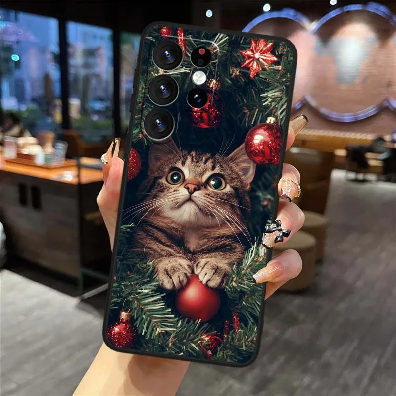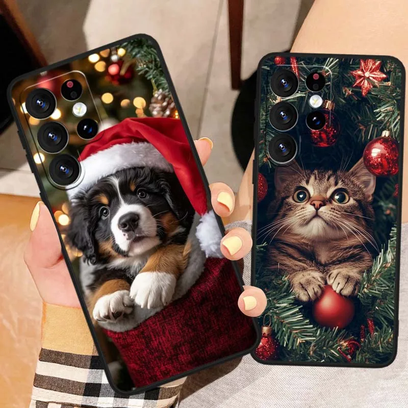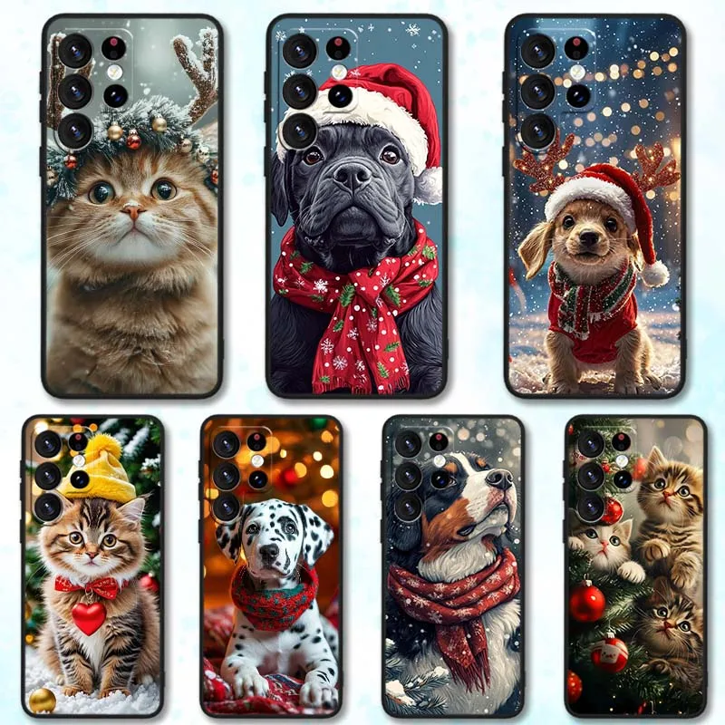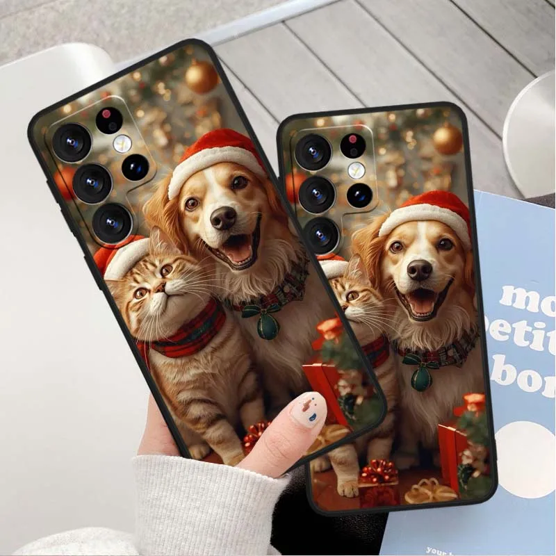 Comprar Funda navideña de perros y gatos para Samsung Galaxy S25 S24 S23 S22 S21 S20 S10 S9 S8 FE Lite Ultra Plus 5G, funda negra para teléfono