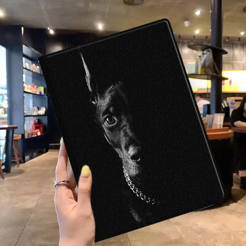 Funda negra Cool Doberman Dog para Samsung Galaxy Tab S11 S10 S9 S8 S7 S6 A10.1 A9 A8 A7 10,1 Lite FE Plus pulgadas