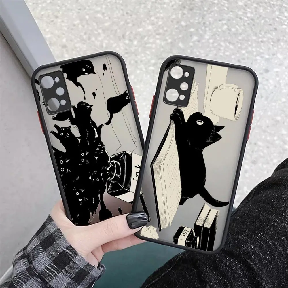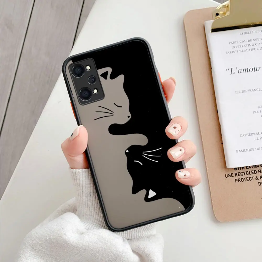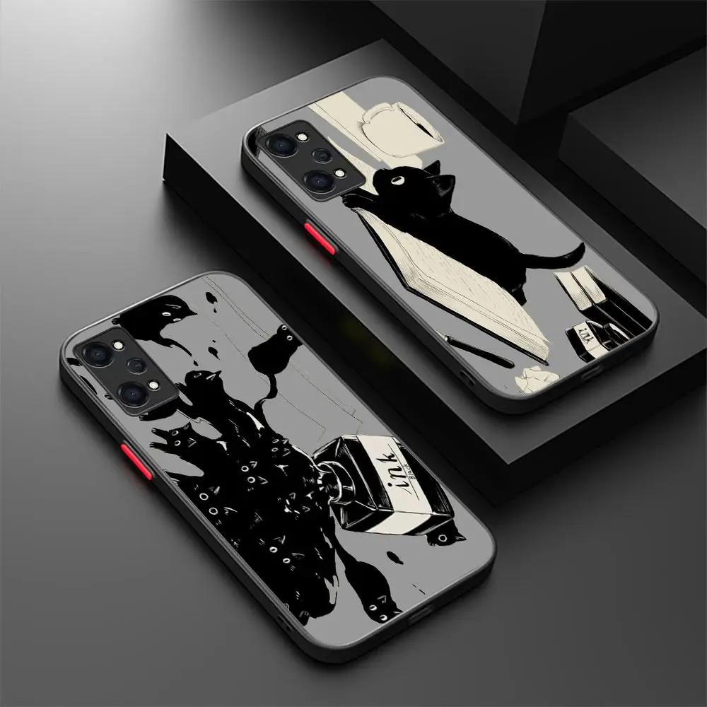 Comprar Funda negra de gato travieso para Realme, cubierta de animales para C15, C20, C21, C30, C31, C33, C35, C55, V15, V25, GT, NEO 2, XT, NARZO 50, 50I, 50A, 5G