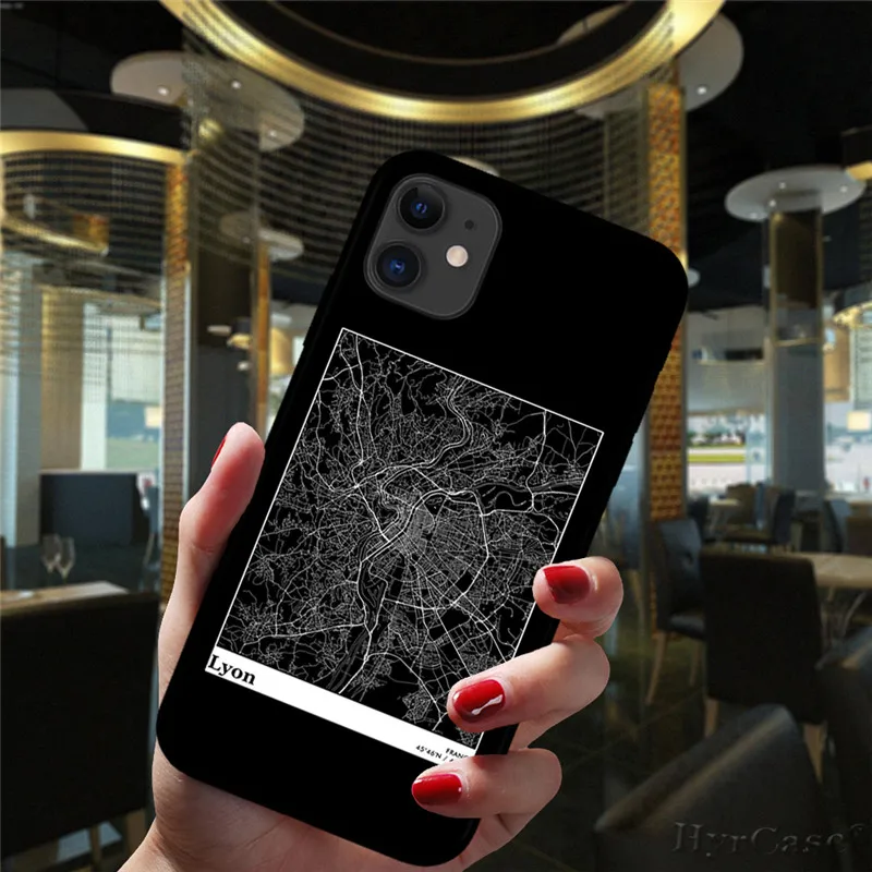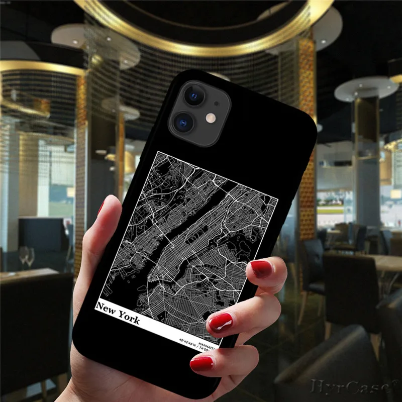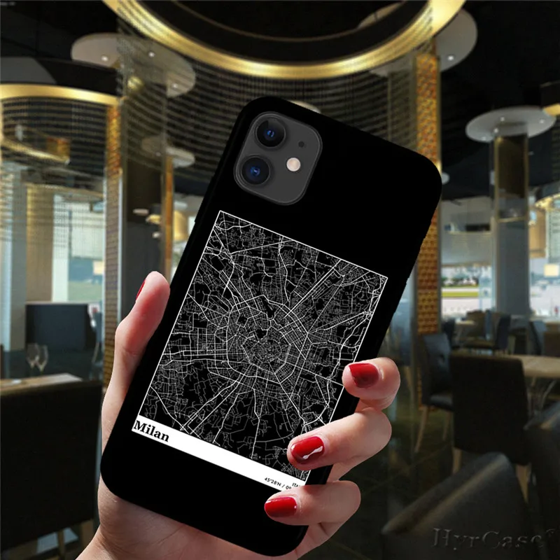 Comprar Funda negra para iPhone 13, 12, 11, 14 Pro Max, Mini, XS, XR, 14Plus, Moscú, viaje, país, ciudad, boceto, mapa, silicona suave, cubierta mate