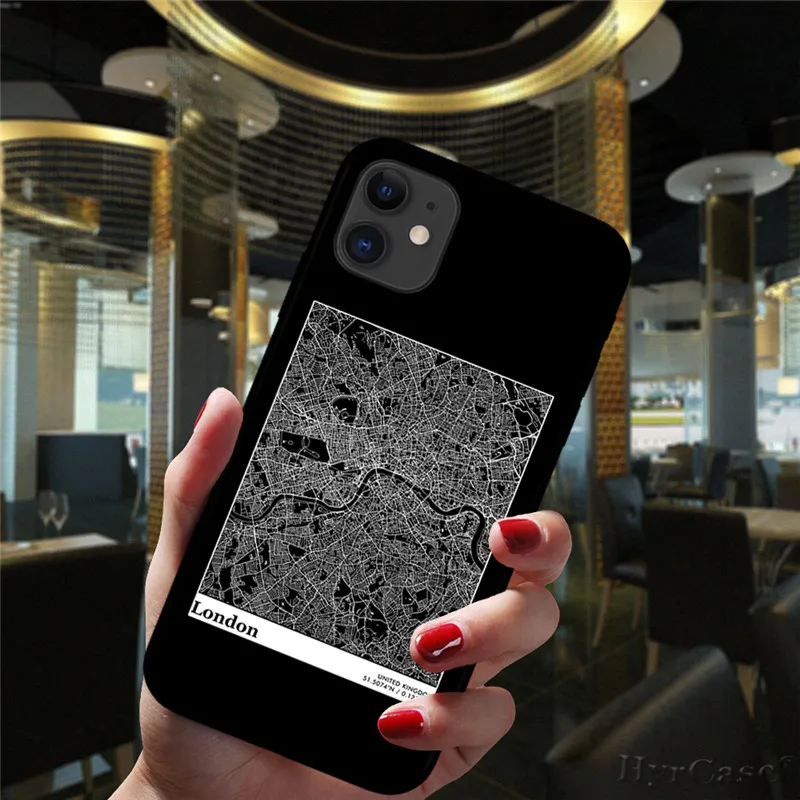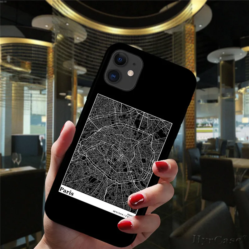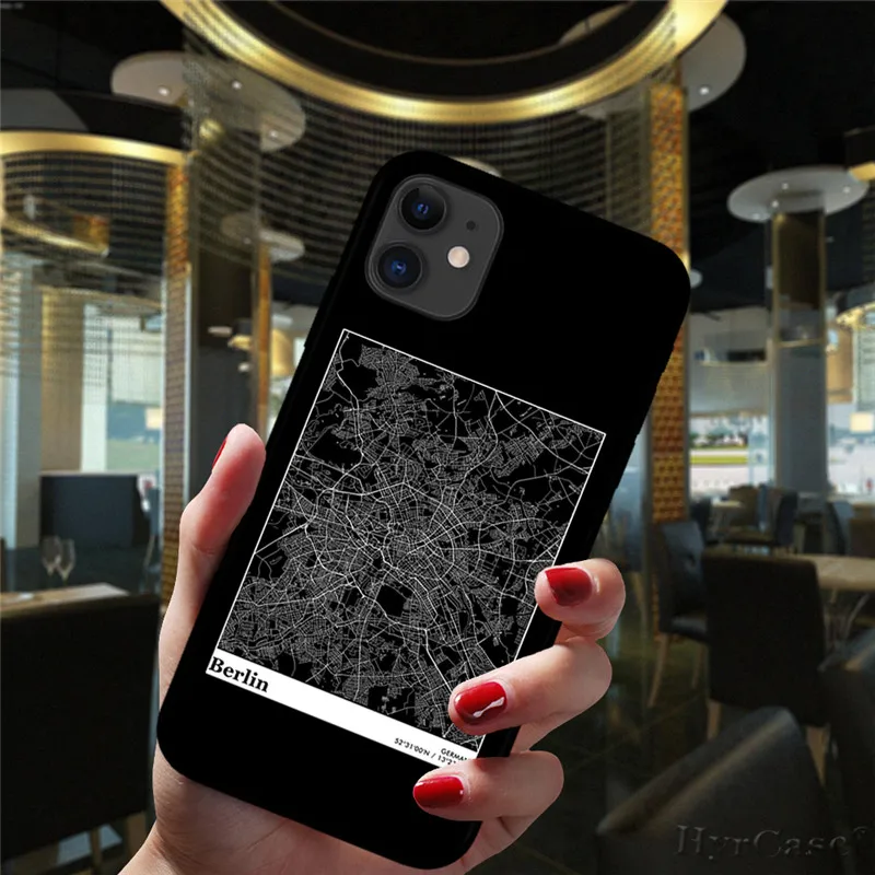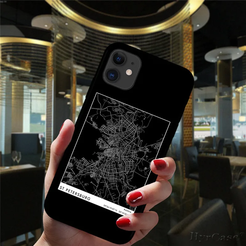 Comprar Funda negra para iPhone 13, 12, 11, 14 Pro Max, Mini, 15 Plus, mapa de bocetos de la ciudad del país de viaje Popular de Moscú, cubierta mate de silicona