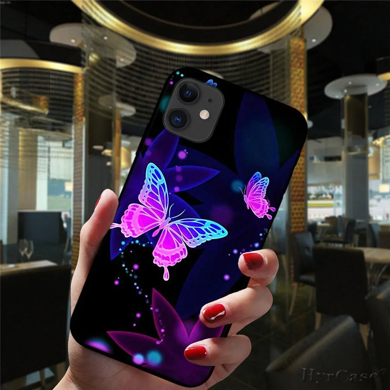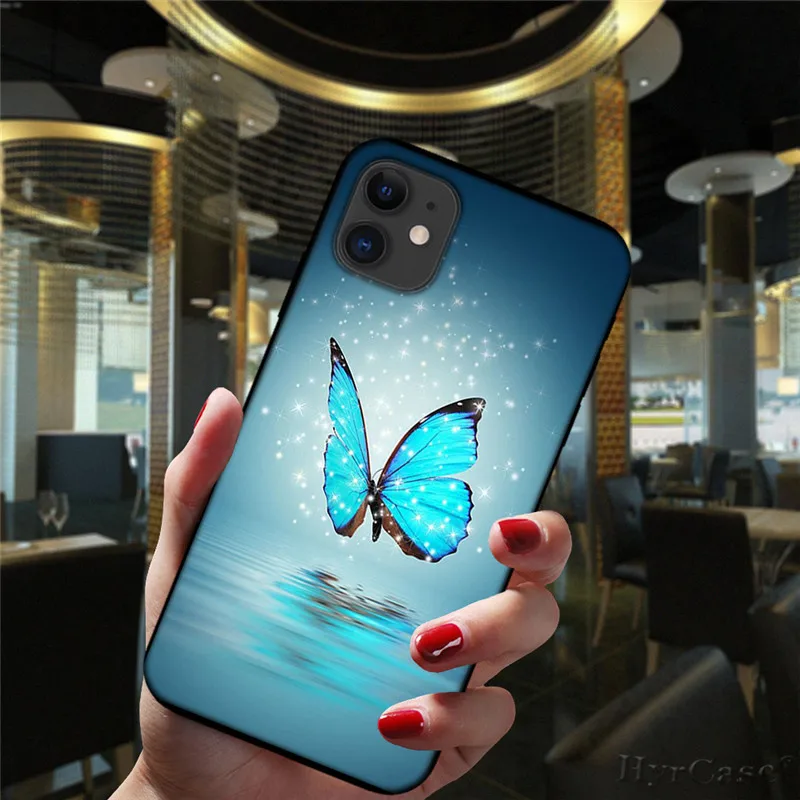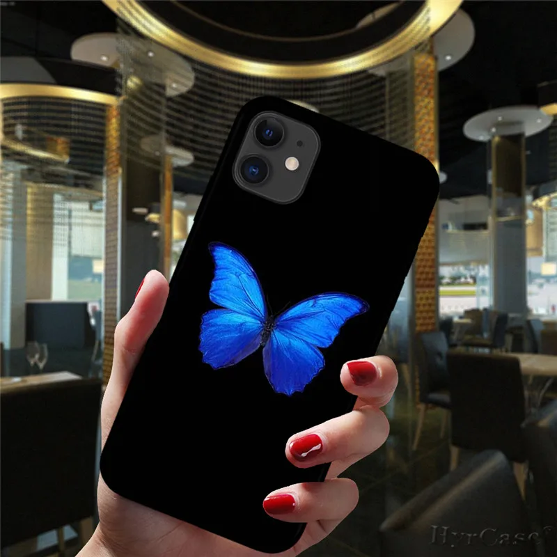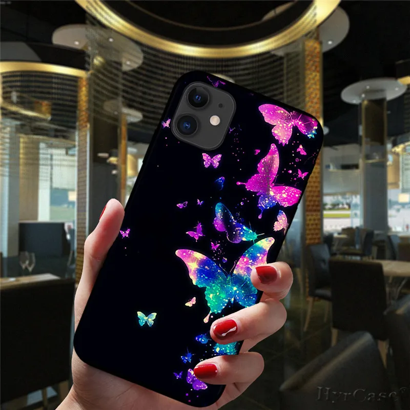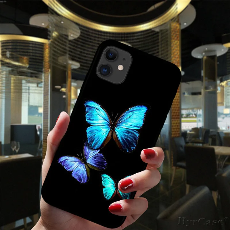 Para iPhone 13 12 11 14 Pro Max Mini 15 Plus funda negra Popular Linda mariposa moda suave silicona mate cubierta