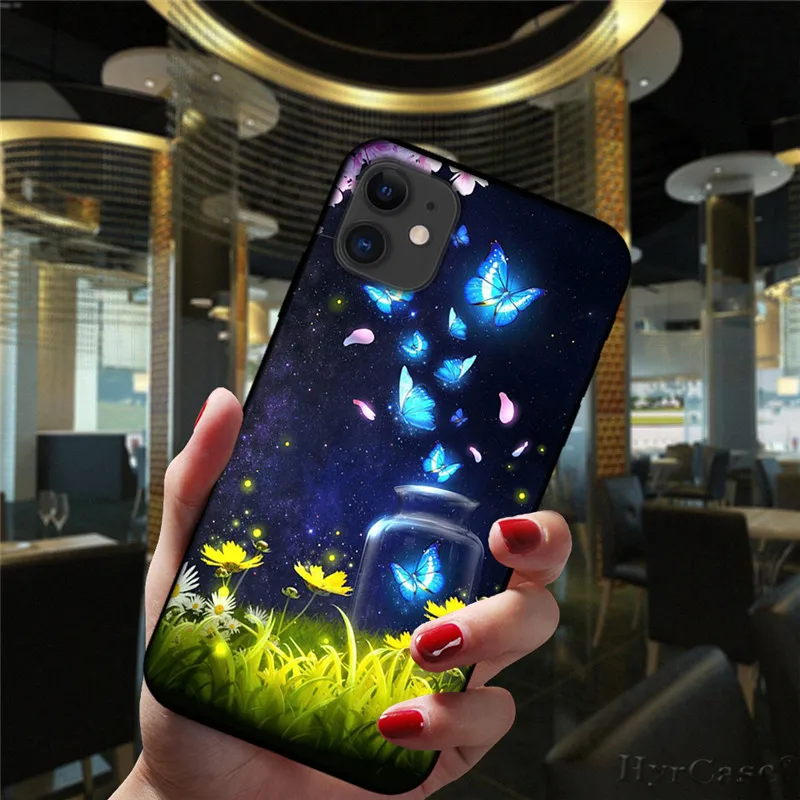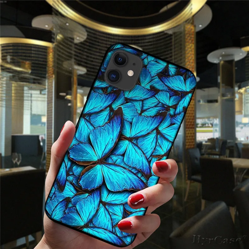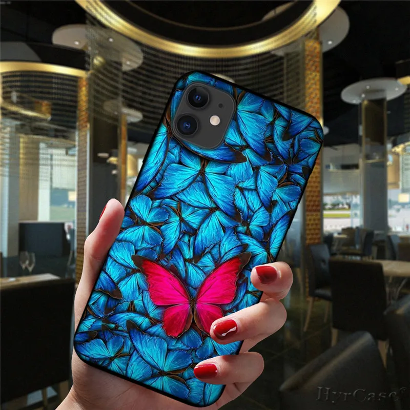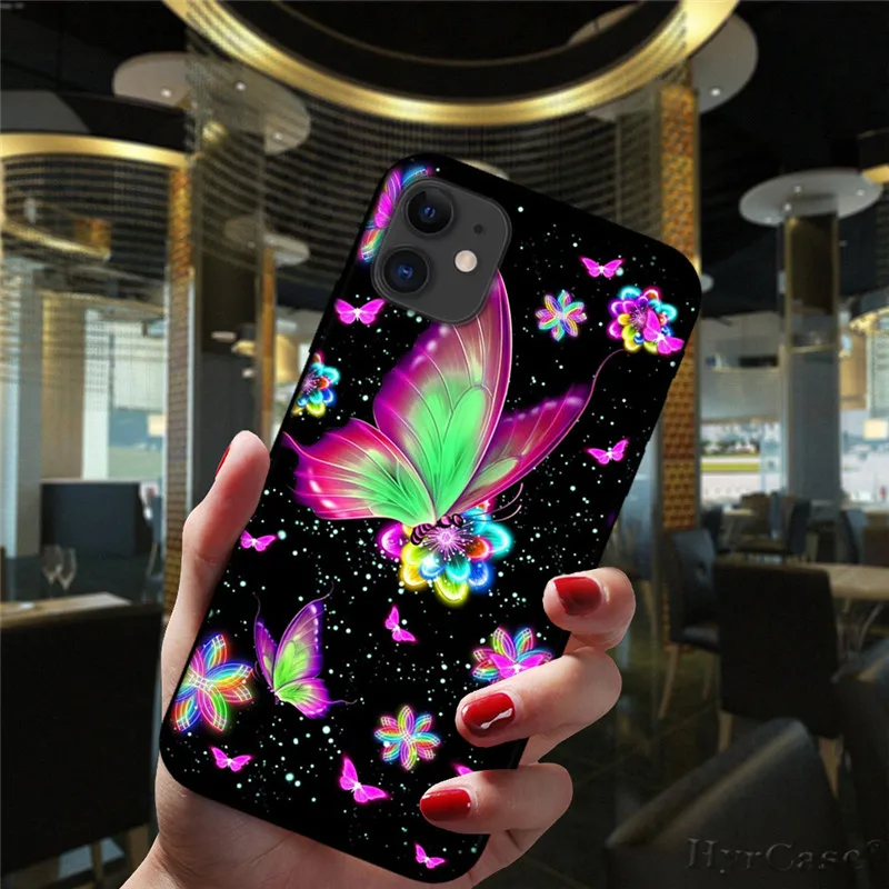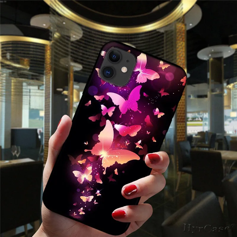 Para iPhone 13 12 11 14 Pro Max Mini 15 Plus funda negra Popular Linda mariposa moda suave silicona mate cubierta