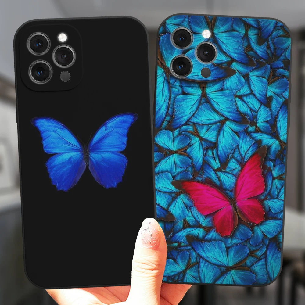 Para iPhone 13 12 11 14 Pro Max Mini 15 Plus funda negra Popular Linda mariposa moda suave silicona mate cubierta