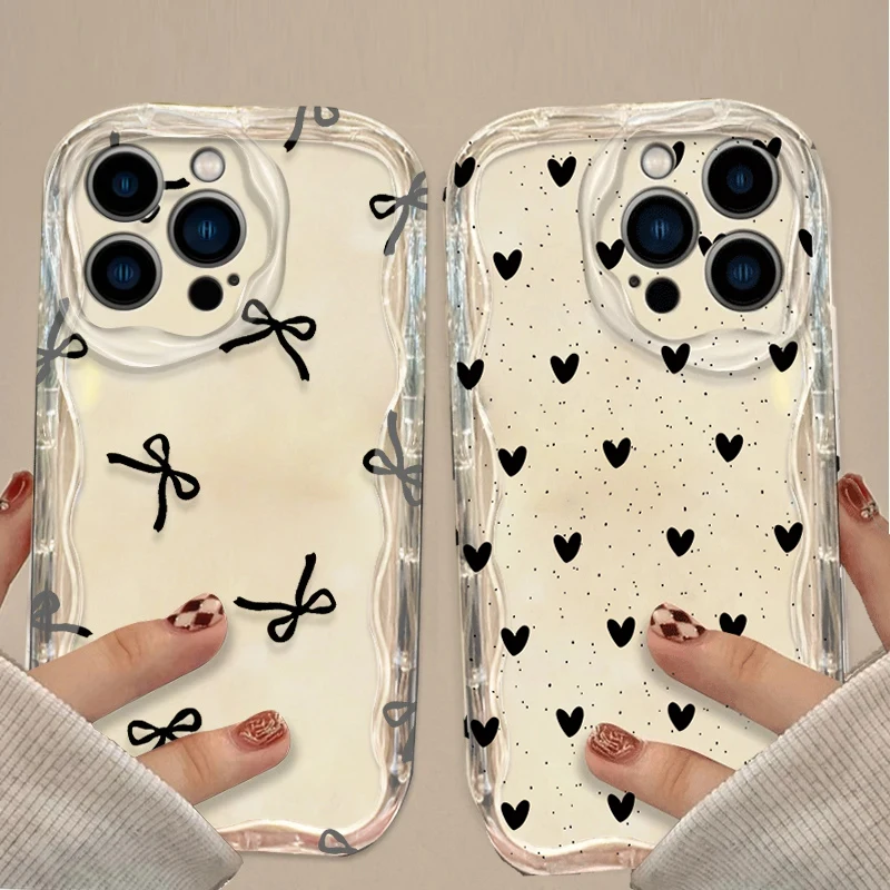 Funda negra con lazo en forma de corazón para Xiaomi 15T Pro POCO X7 X6 X5 F3 F4 X3 M3 M4 M6 F6 F7 Pro 15 Ultra 12 11 Lite 5G NE 12T