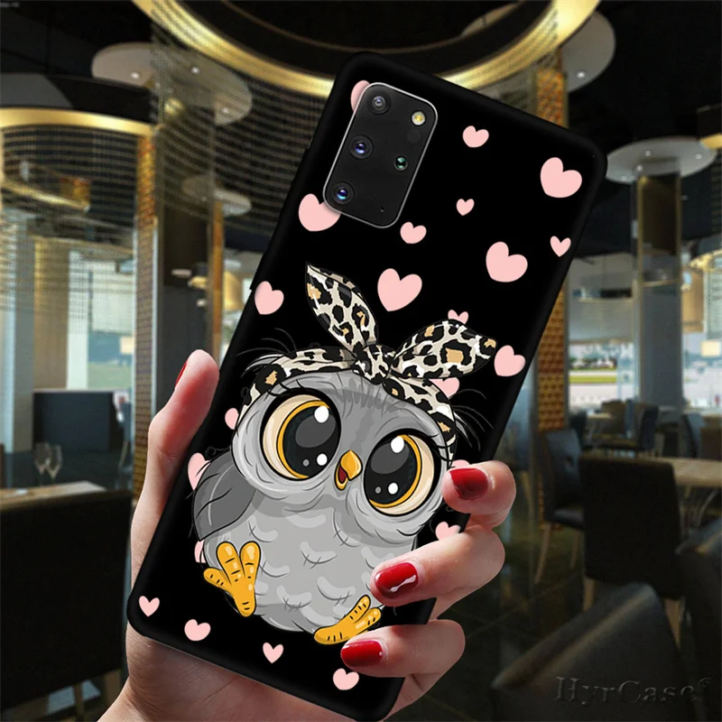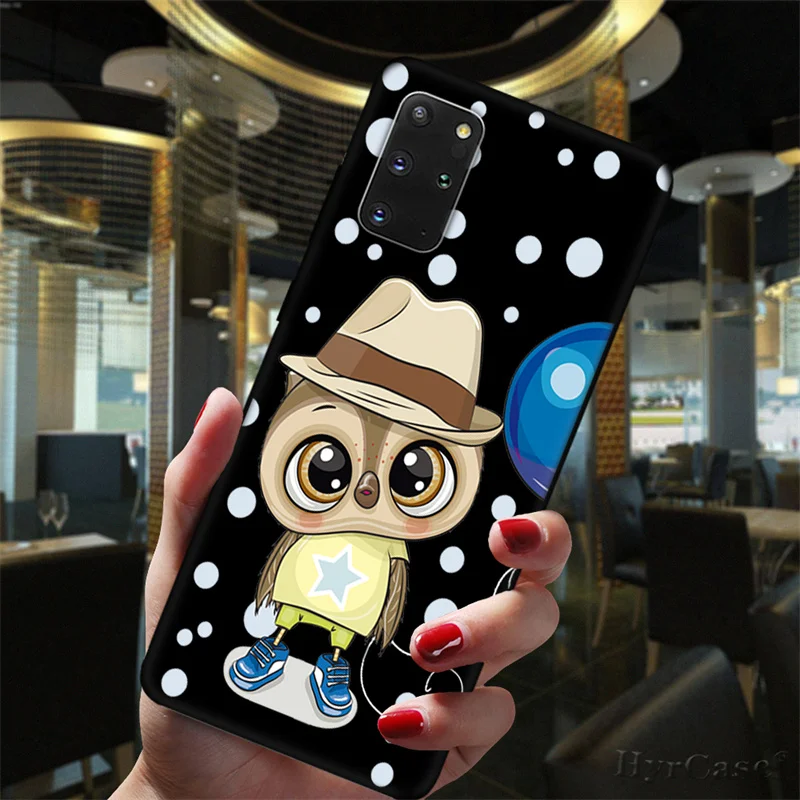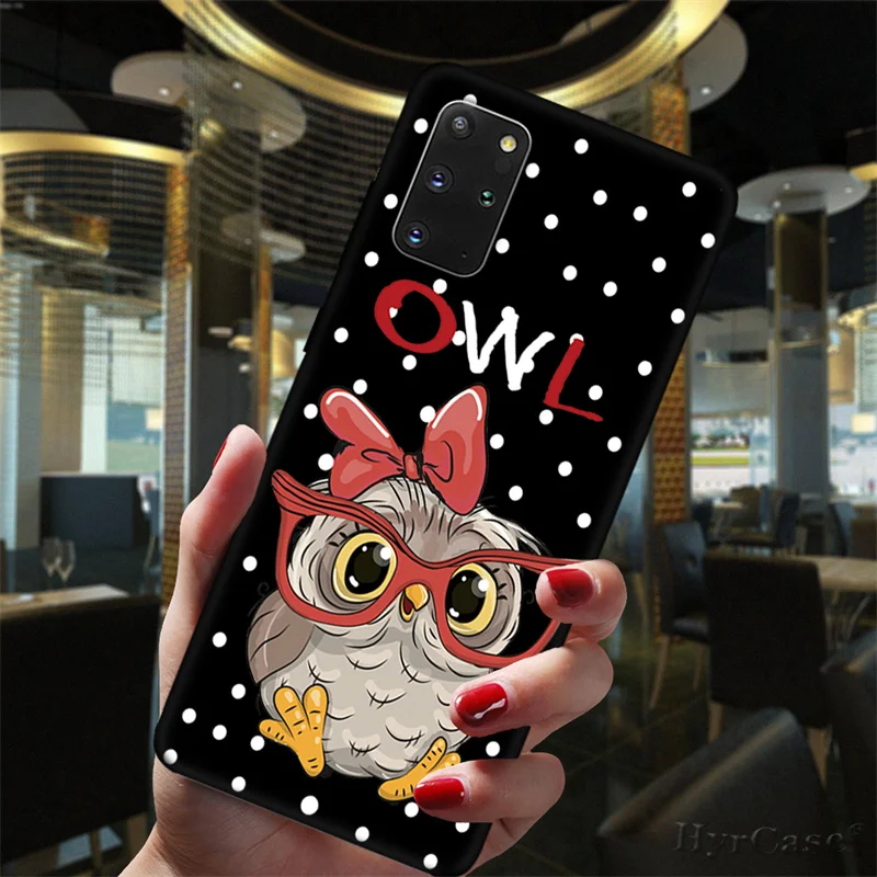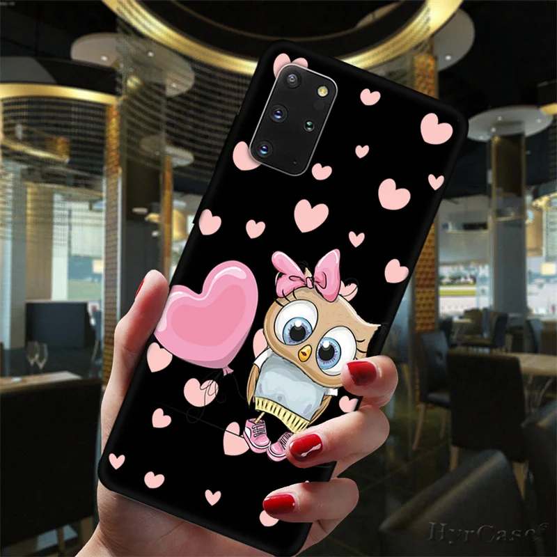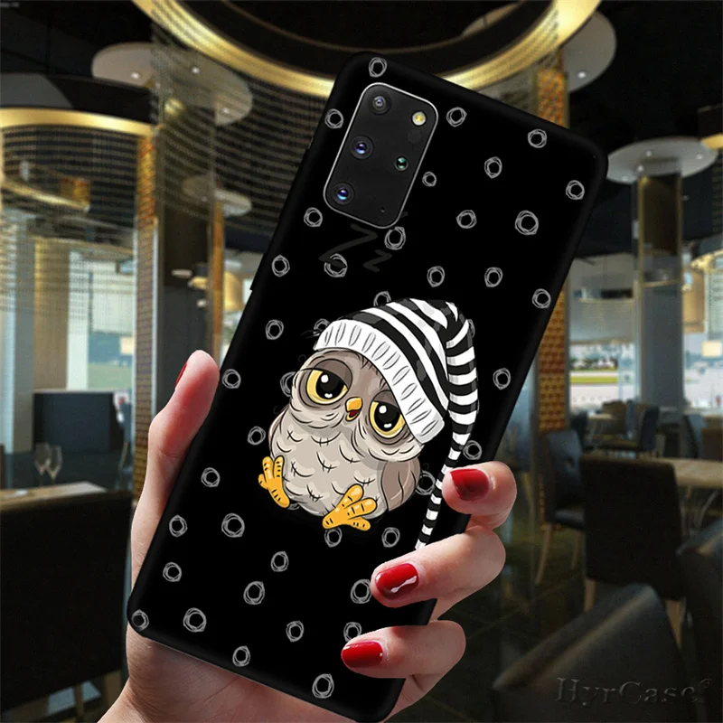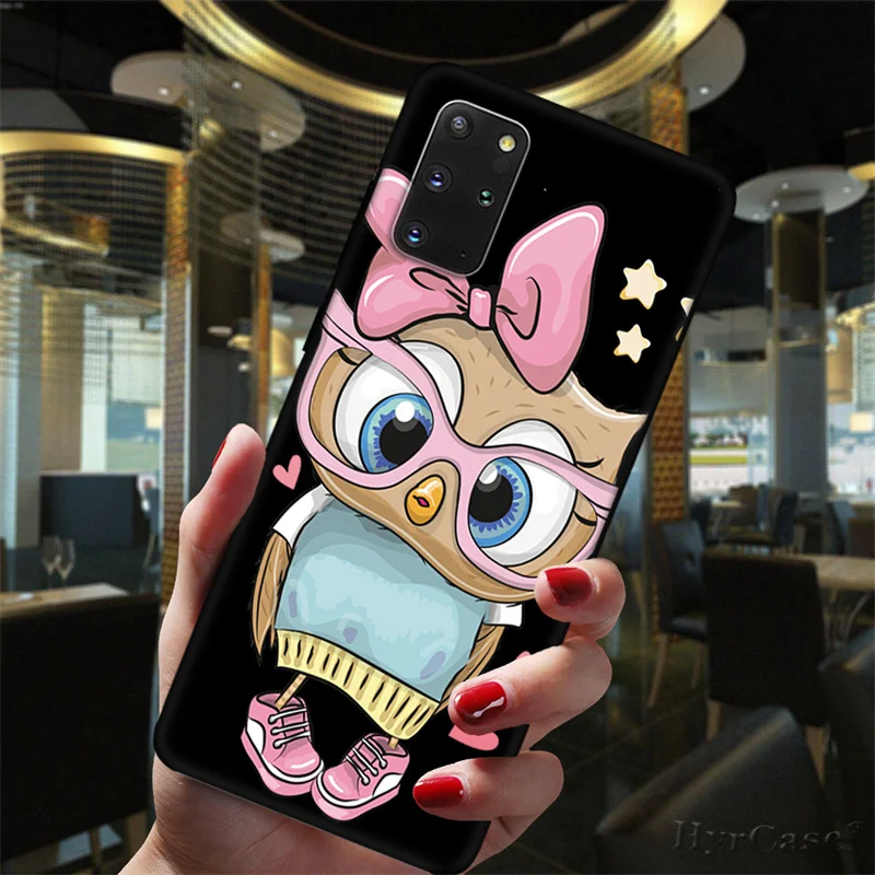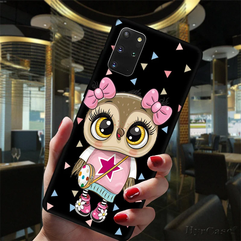 Funda negra para Samsung S23 Plus S22 S20 S21 FE NOTE 20 Ultra Popular dibujos animados chica regalos lindo búho amantes moda funda de silicona