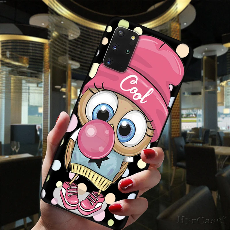Comprar Funda negra para Samsung S23 Plus, S22, S20, S21 FE, NOTE 20, Ultra Popular, dibujos animados, chica, regalos, búho lindo, amantes, moda, funda de silicona