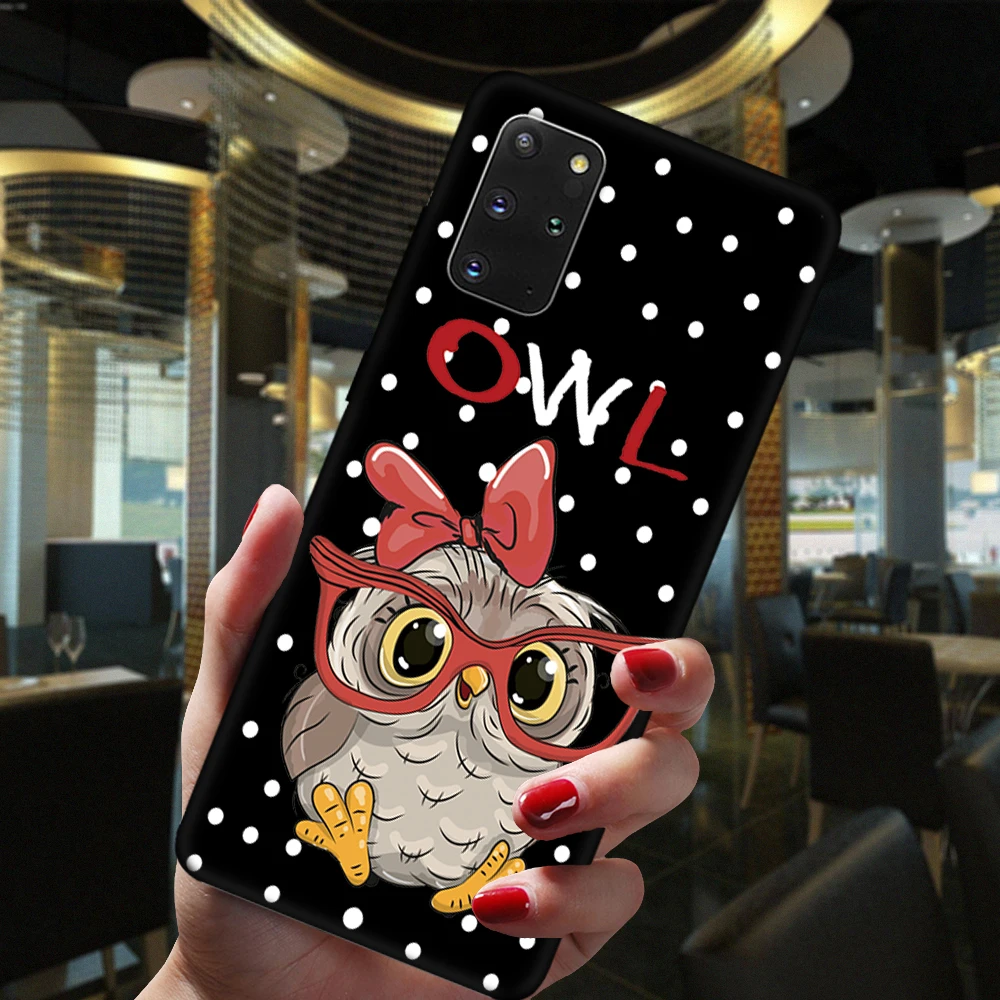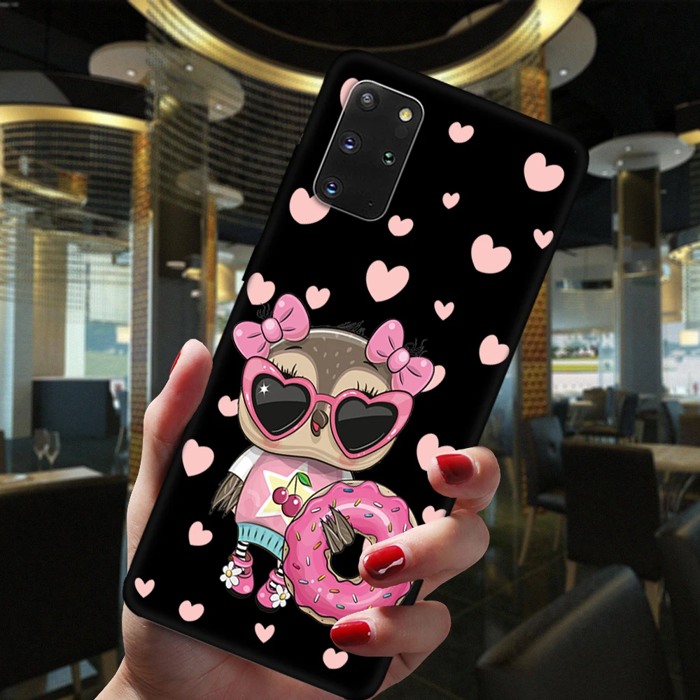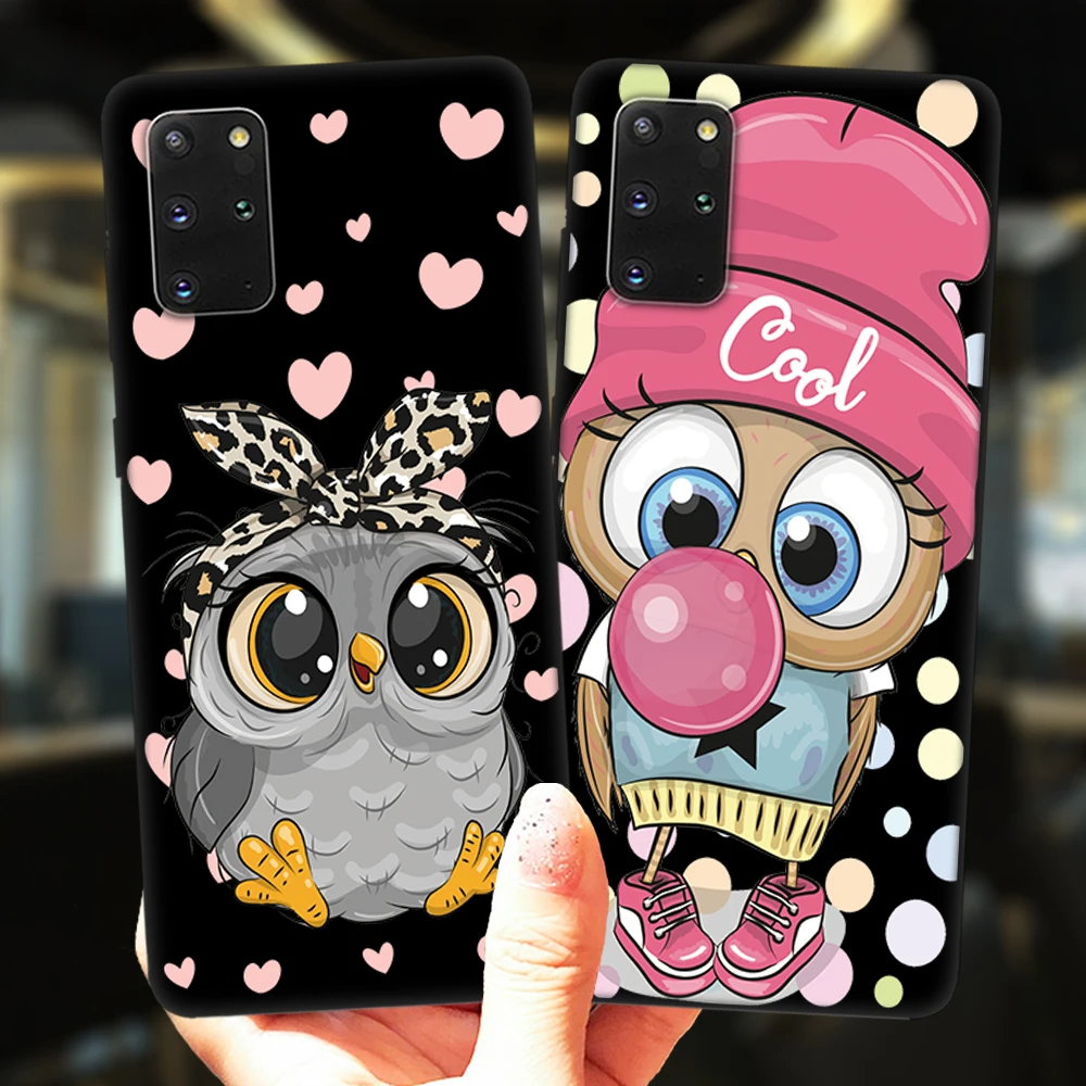 Funda negra para Samsung S23 Plus S22 S20 S21 FE NOTE 20 Ultra Popular dibujos animados chica regalos lindo búho amantes moda funda de silicona