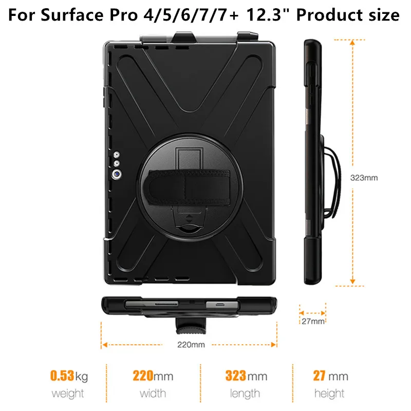 Nota: ¡La tableta y el lápiz óptico no están incluidos en el paquete!Comprar Funda para niños para Microsoft Surface Pro 4 5 6 7 7Plus, funda a prueba de golpes para Surface Go 4 3 2 Go4 Go3 Pro7/6/5, funda con soporte para tableta