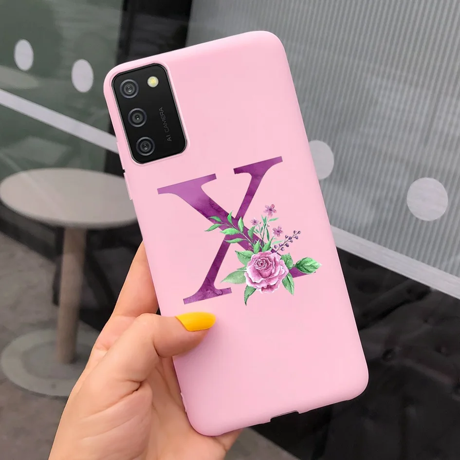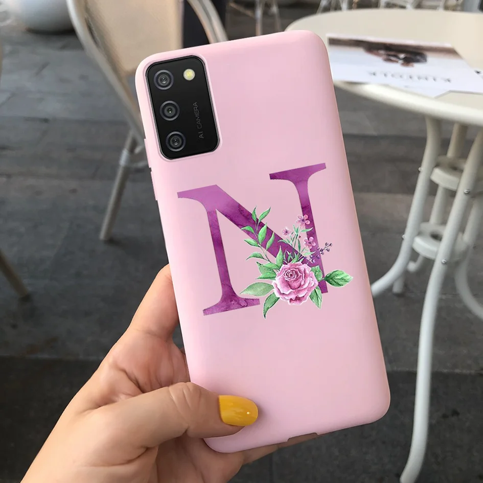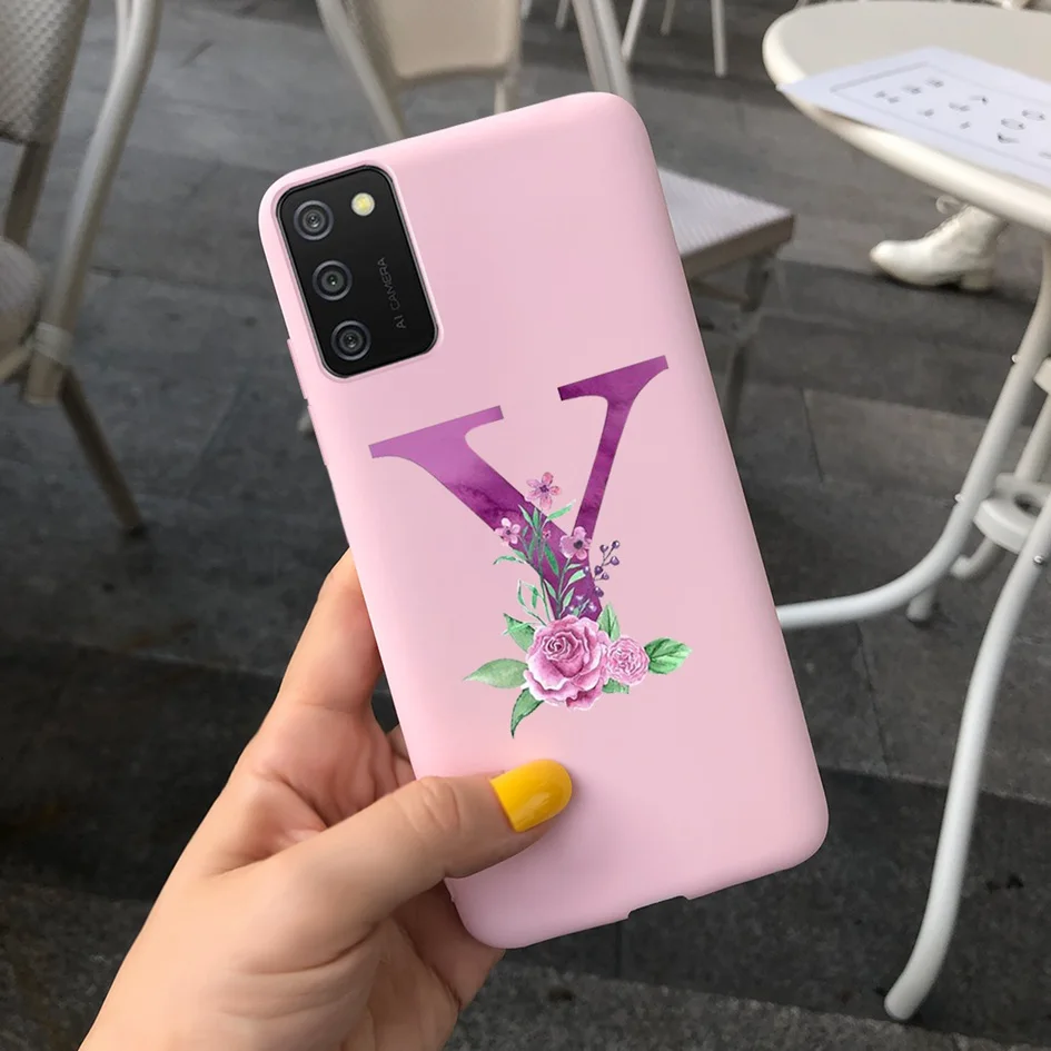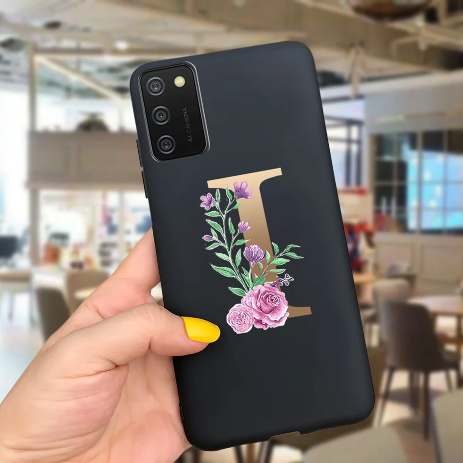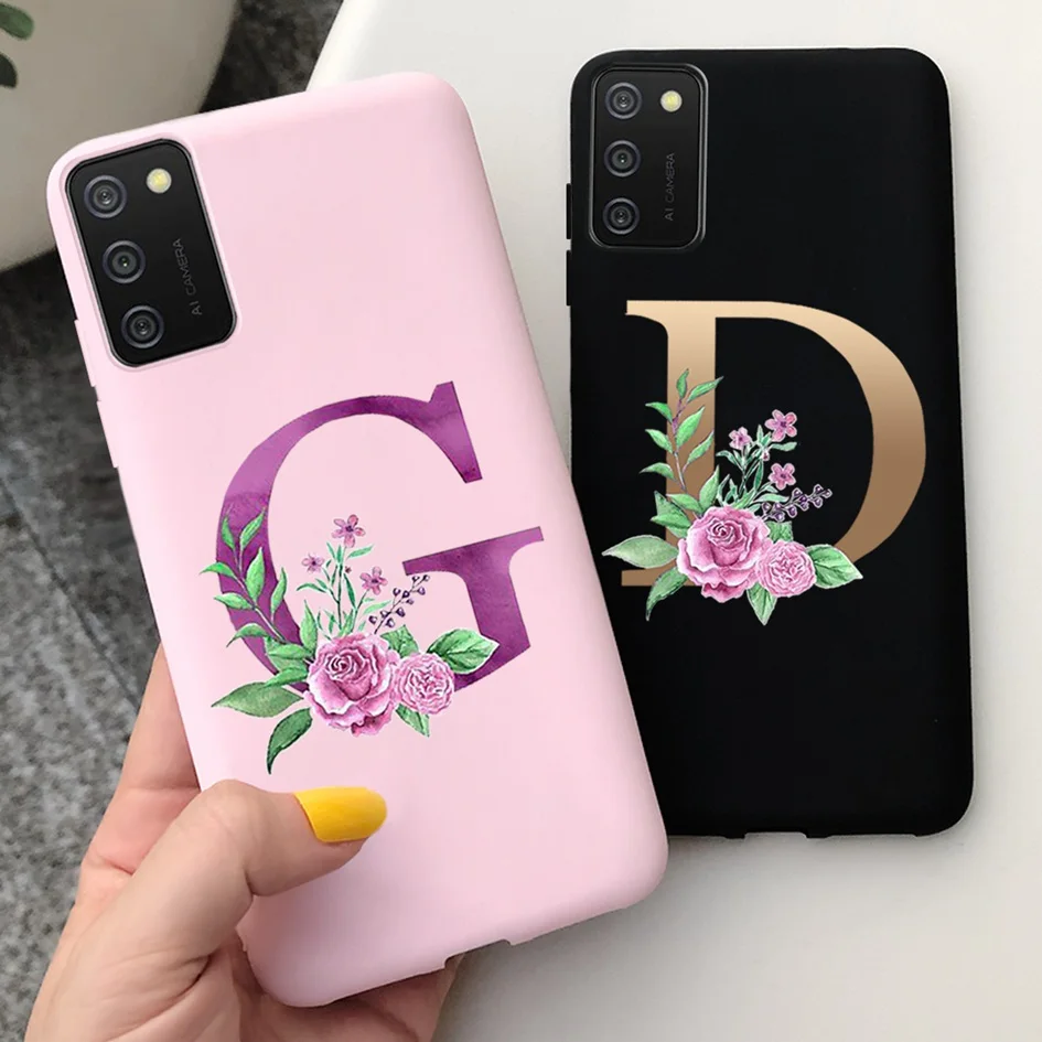 Para Samsung Galaxy A02S A03S M02S 2021 funda bonita con nombre personalizado letra inicial flor funda de teléfono para Galaxy A02S TPU Capa