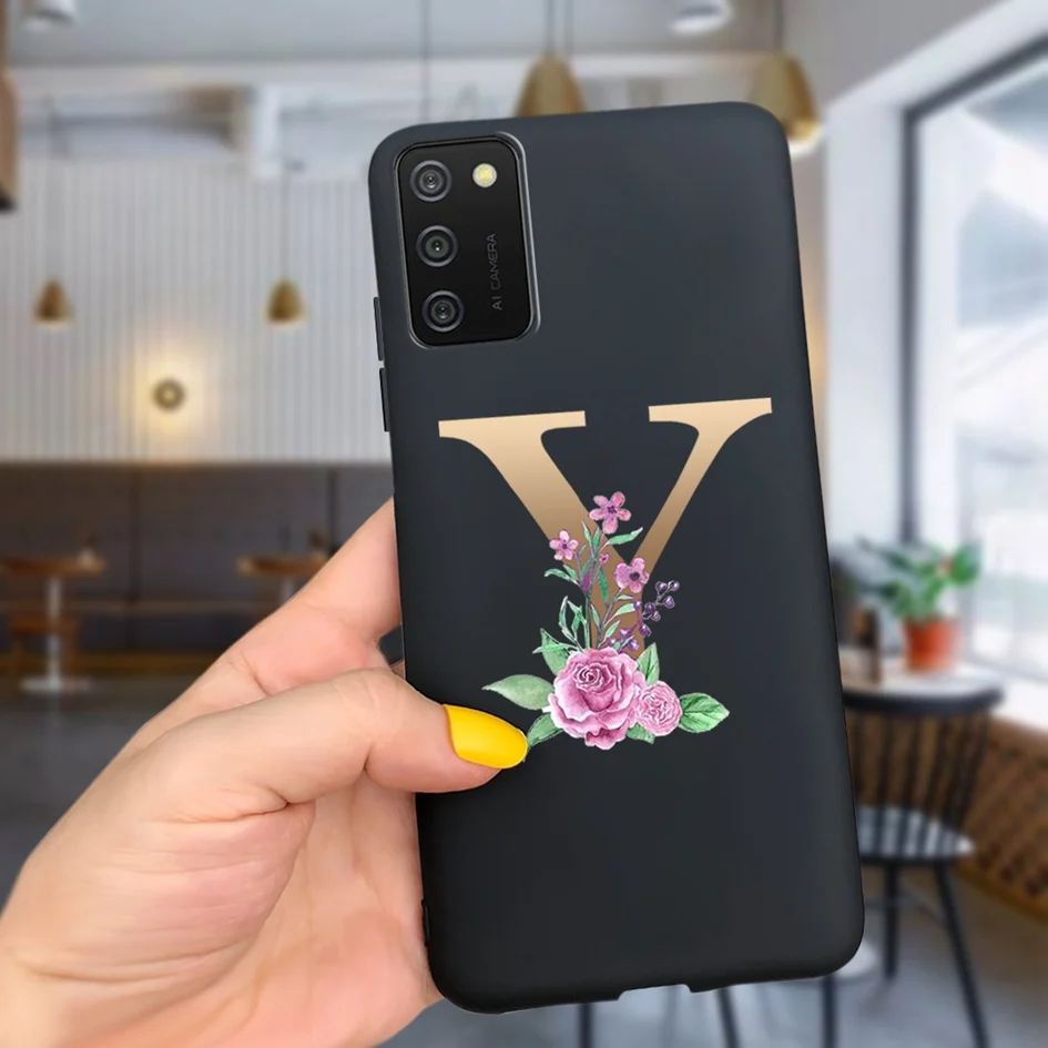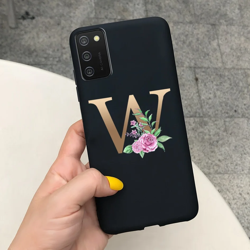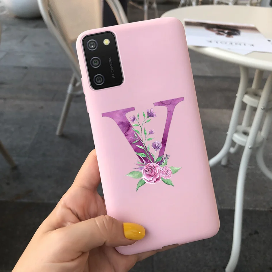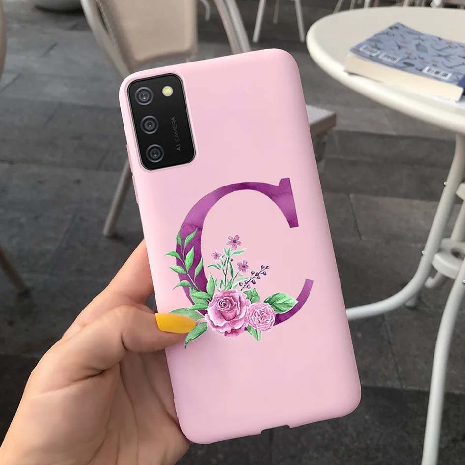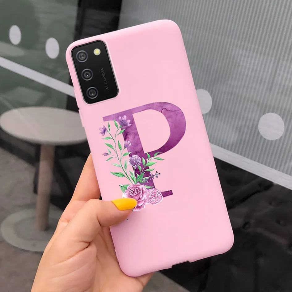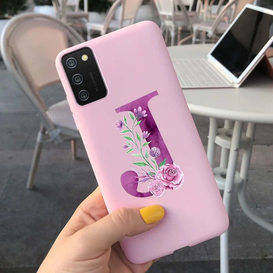 Para Samsung Galaxy A02S A03S M02S 2021 funda bonita con nombre personalizado letra inicial flor funda de teléfono para Galaxy A02S TPU Capa