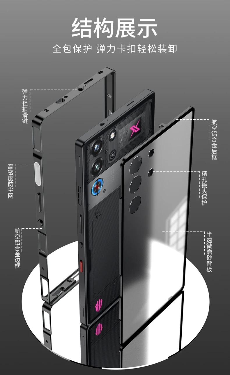 Funda para Nubia Red Magic 10 Pro Plus, aleación de aluminio de lujo, cubierta trasera mate de una cara para parachoques a prueba de golpes RedMagic 10 Pro