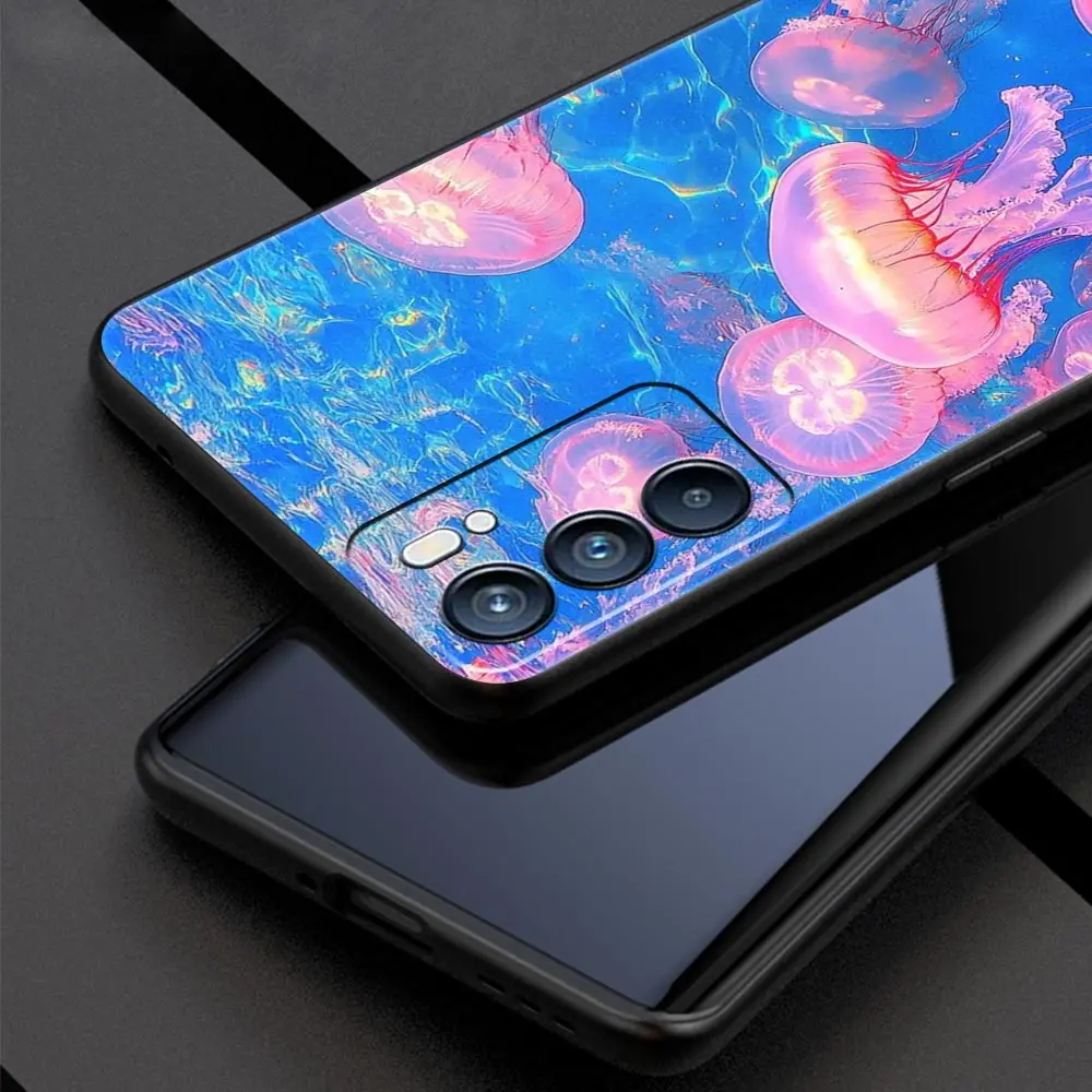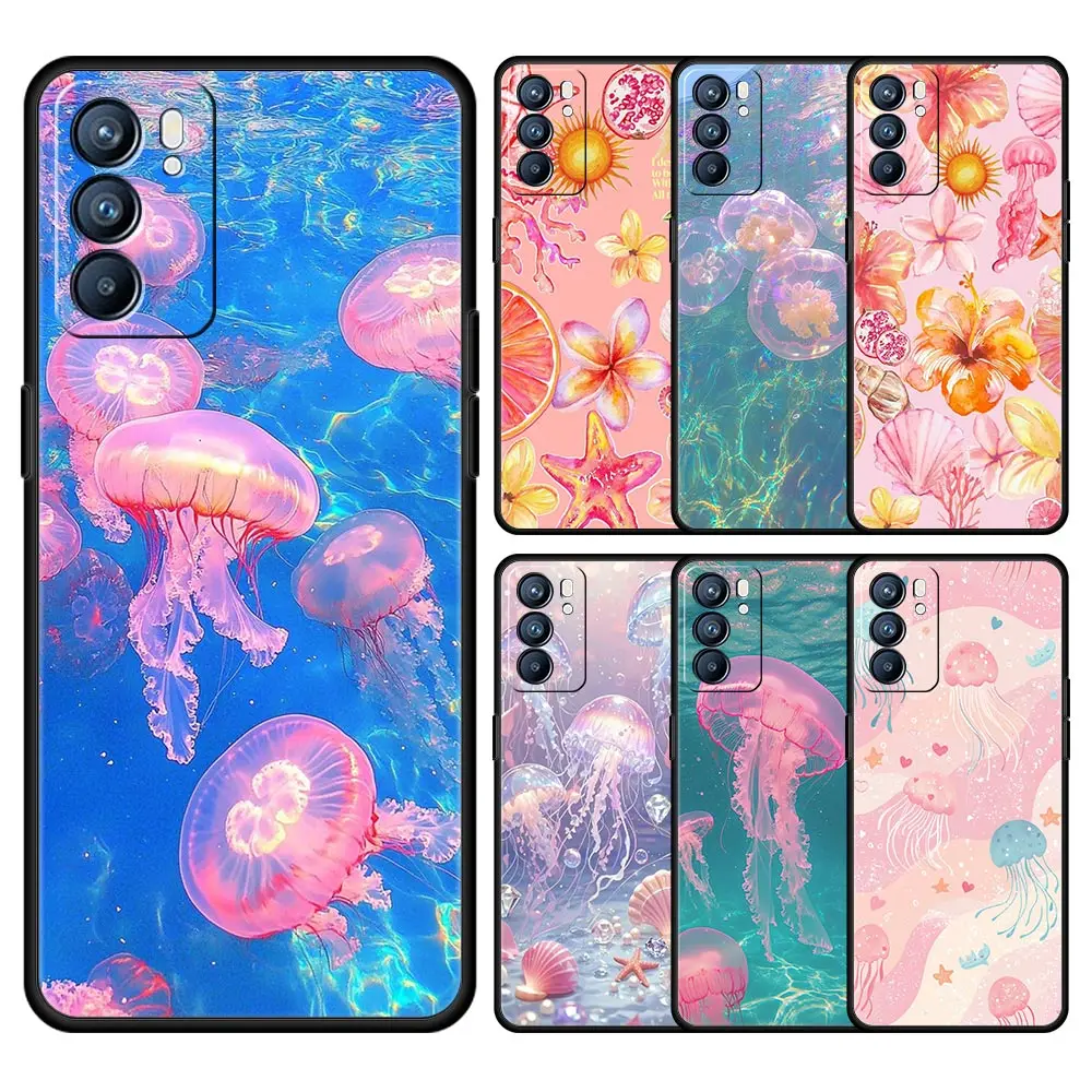 Funda oceánica de medusas rosas para Oppo Reno14 Reno13 Reno12 11 F 10 Find X5 X9 Pro A54 5G A53 A52 A9 A78 4G A79 A80 A98
