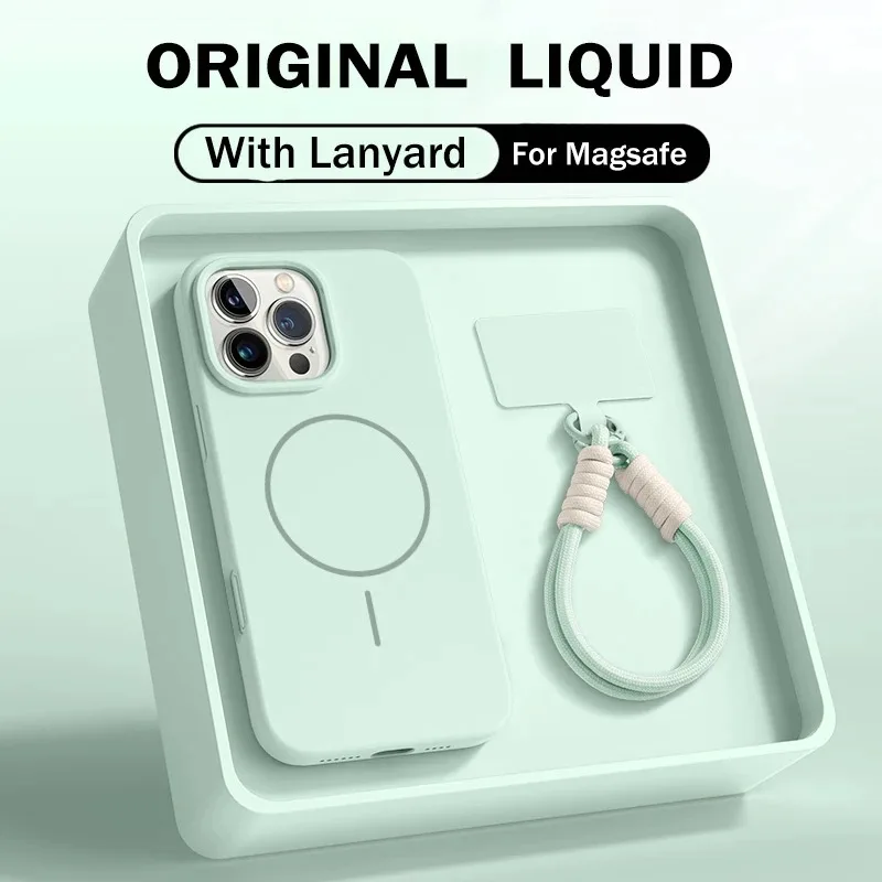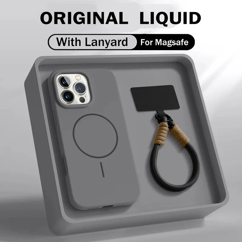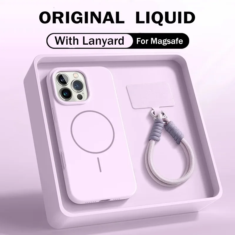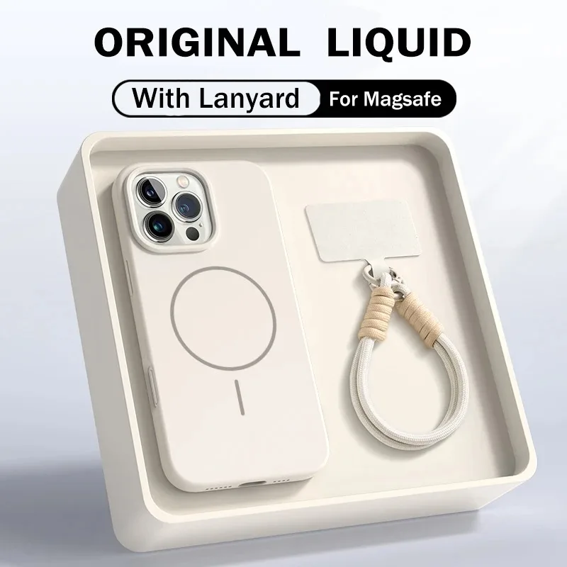 Funda oficial de cuerda con correa de cordón de Color caramelo de silicona líquida para iPhone 16 15 14 13 12 Pro Max Plus para funda Magsafe Magneitc