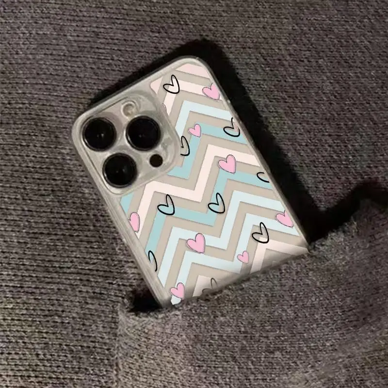 Funda con ondas de corazón para iPhone 17 16 15 14 13 12 11 Pro Max XR 7 8 Plus SE, funda protectora de pantalla a prueba de golpes - imagen 1