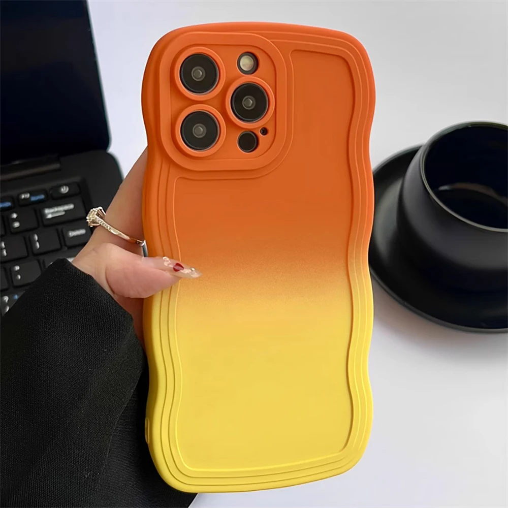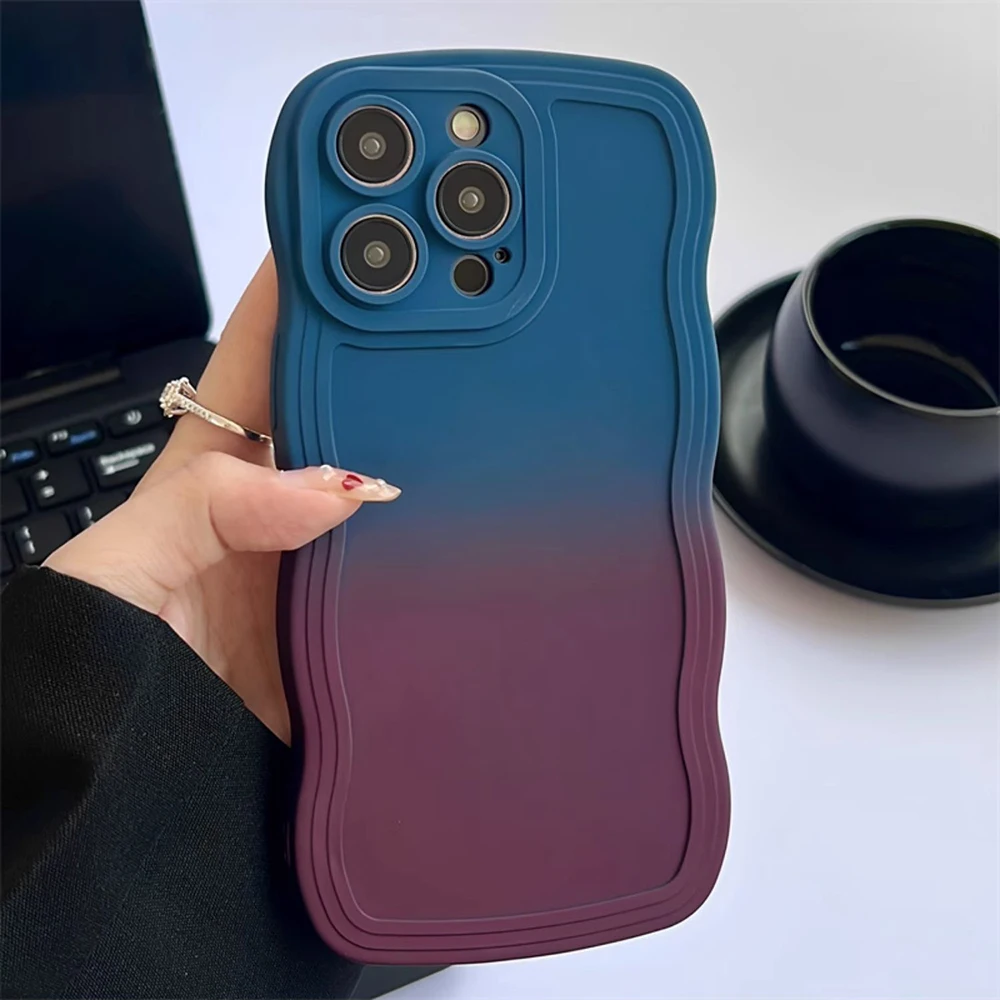 Funda ondulada de Color degradado para iPhone 15 Pro Max, 11, 12, 13, 14, 15 Plus, XS Max, XR, X, 7, 8 Plus, protección de cámara, cubierta suave a prueba de golpes
