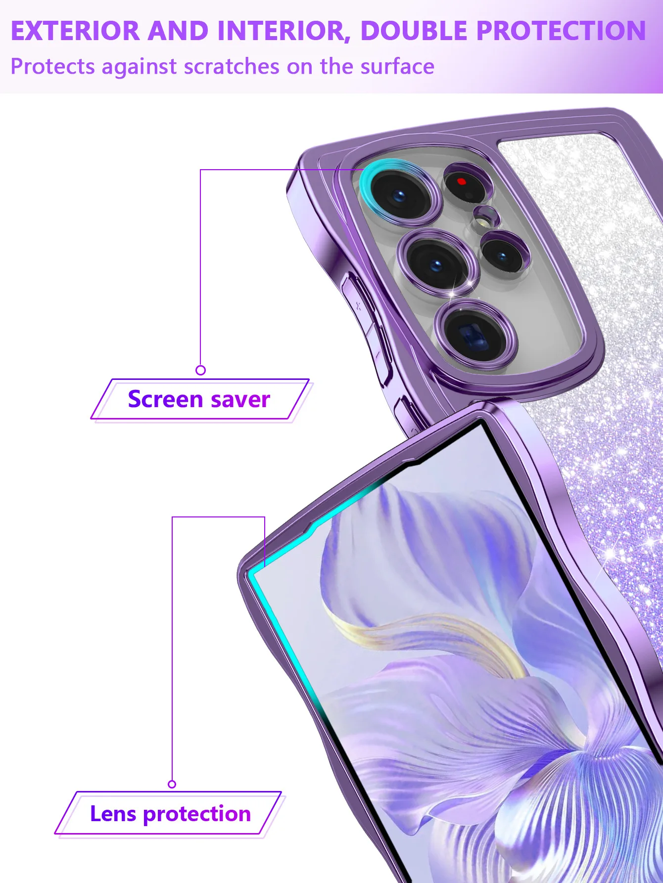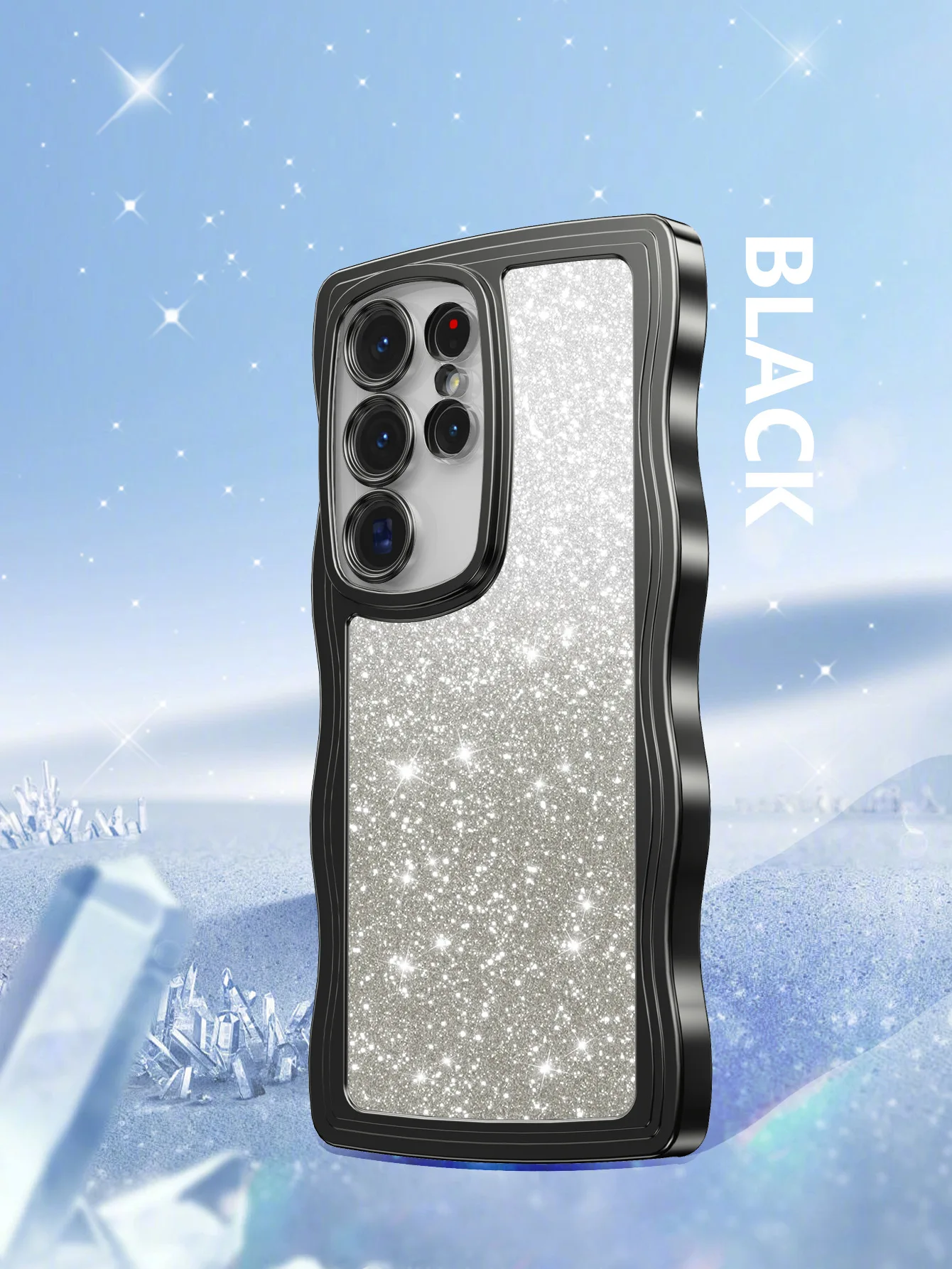 Funda ondulada transparente galvanizada para Samsung Galaxy S24 S23 S22 Plus Ultra S21FE A55 A16 A15 A06 con cubierta de papel con tarjeta brillante