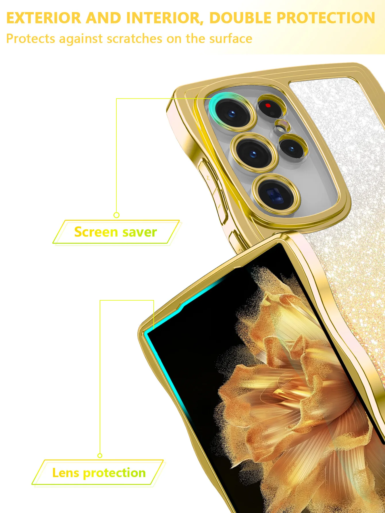 Funda ondulada transparente galvanizada para Samsung Galaxy S24 S23 S22 Plus Ultra S21FE A55 A16 A15 A06 con funda de papel para tarjeta brillante