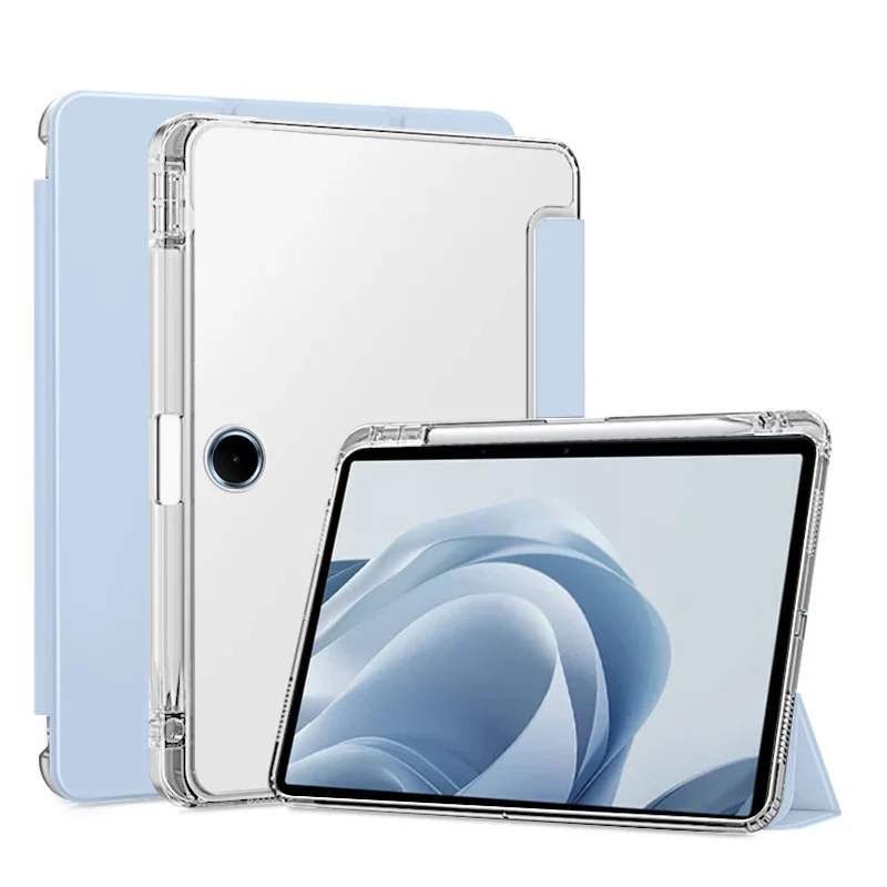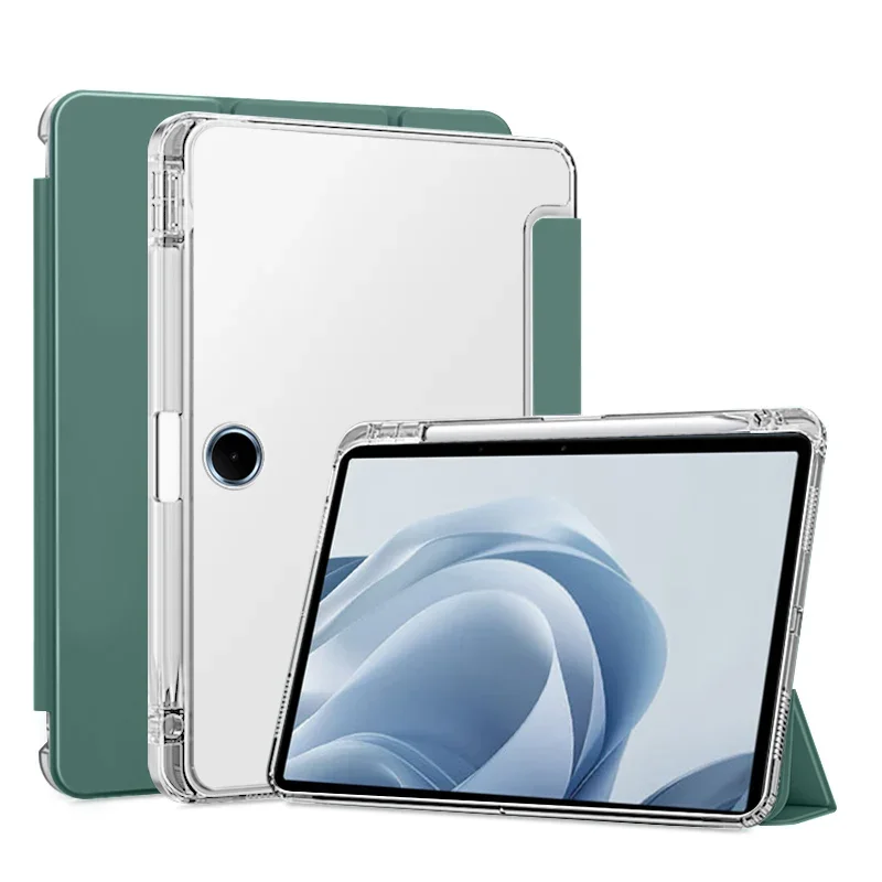 Especificación1. Parte delantera de cuero PU + parte trasera de TPU suave y transparente 2. La cubierta plegable triple se puede plegar como soporte. 3. Diseño de lujo y moda, se adapta perfectamente a la forma. 4. Forro de microfibra suave, antiarañazos, proporciona protección integral. 5. Sin cierre magnético 6.Case compatible adecuado: Para OPPO Pad SE 11 pulgadas/para OnePlus Pad Lite