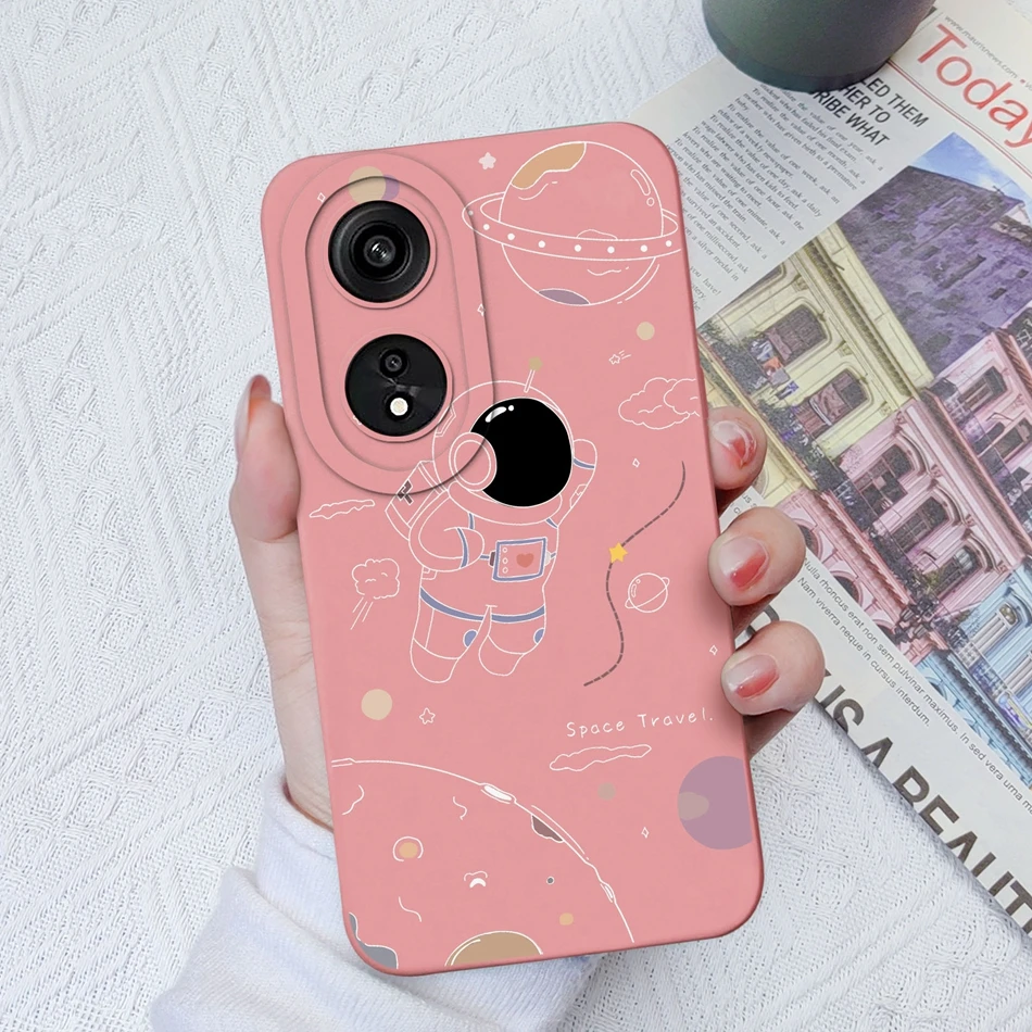 Funda para Oppo A58 A78 4G 5G flor astronauta silicona líquida suave funda trasera cuadrada para OppoA58 OppoA78 Capa Coque carcasa de parachoques