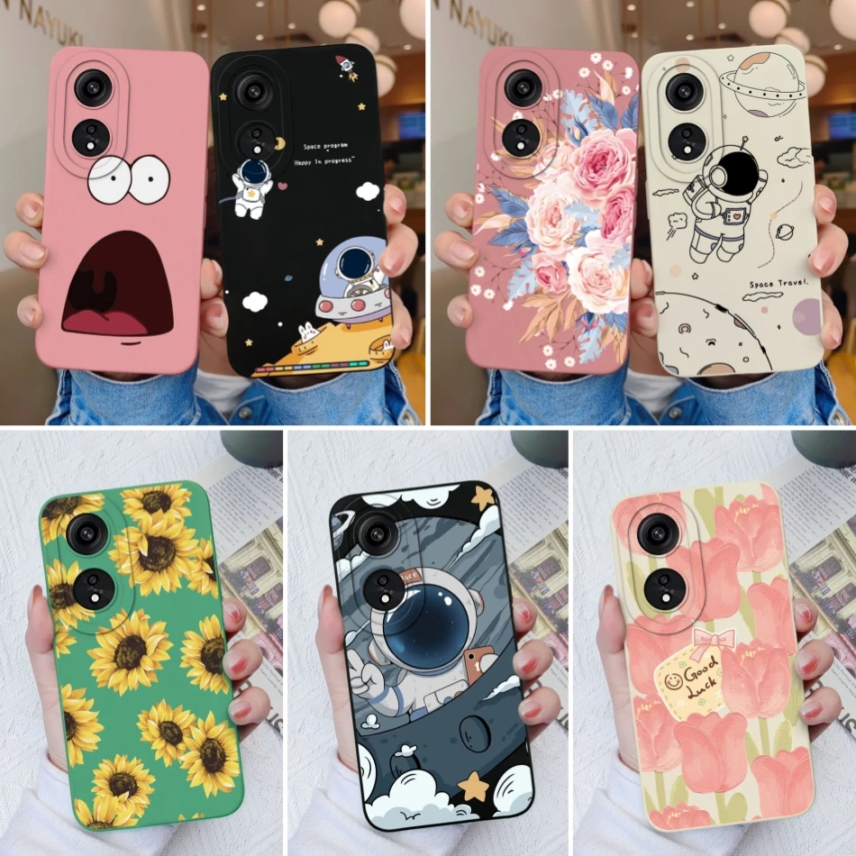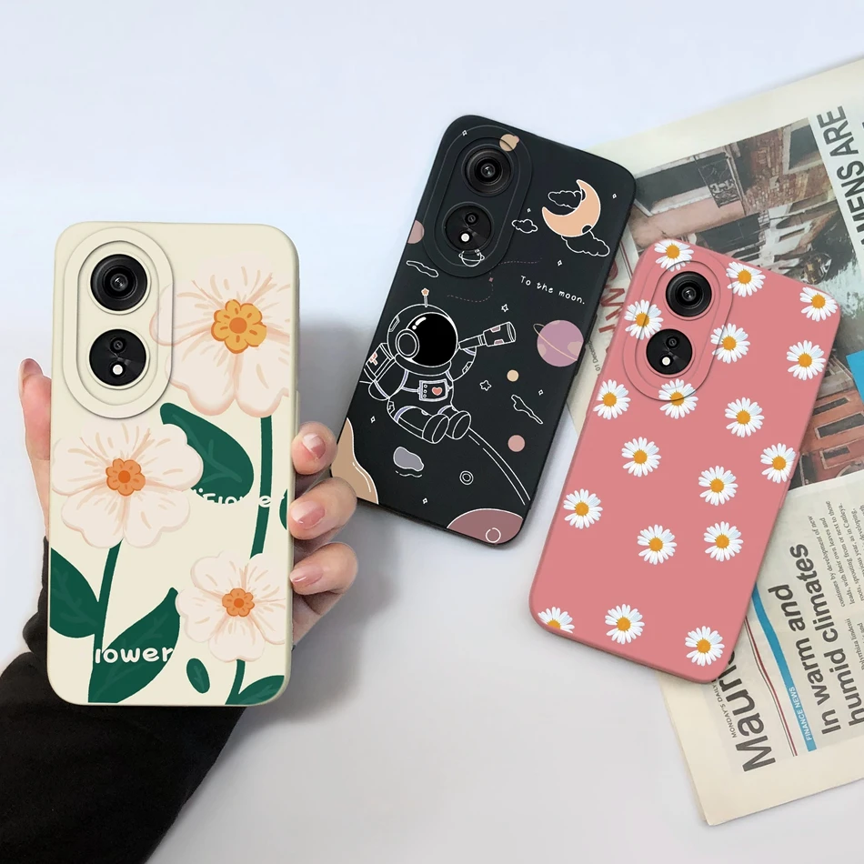 Funda para Oppo A58 A78 4G 5G flor astronauta silicona líquida suave funda trasera cuadrada para OppoA58 OppoA78 Capa Coque carcasa de parachoques