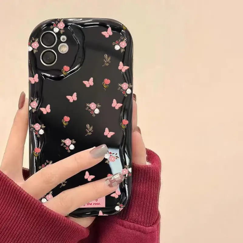 Funda para OPPO A78 A79 A98 A58 A38 A60 Reno 10 5G 8 11 Pro 8T 5G Reno 7 4G 5 6 Lite 7Z 8Z funda de silicona flor ondulada mariposa