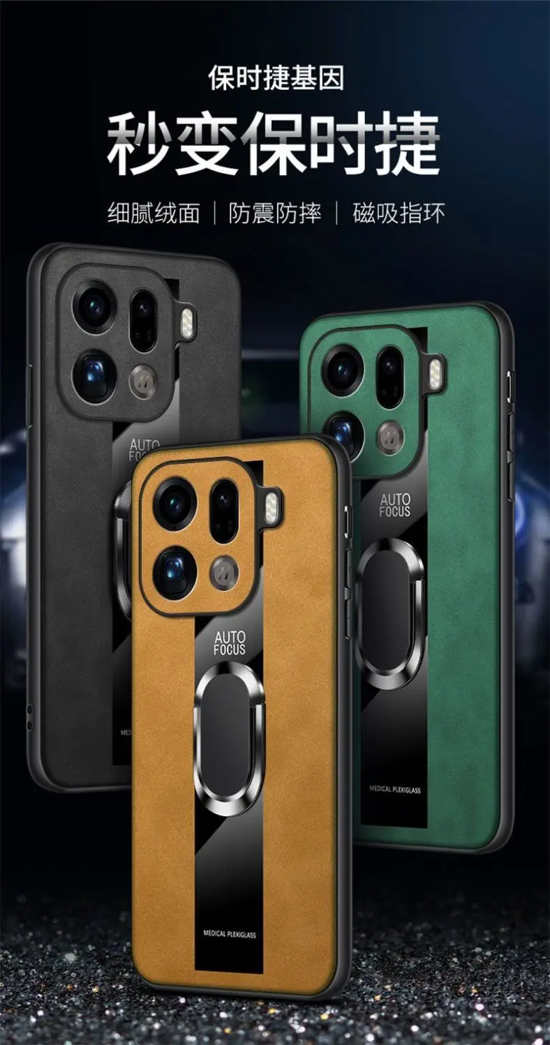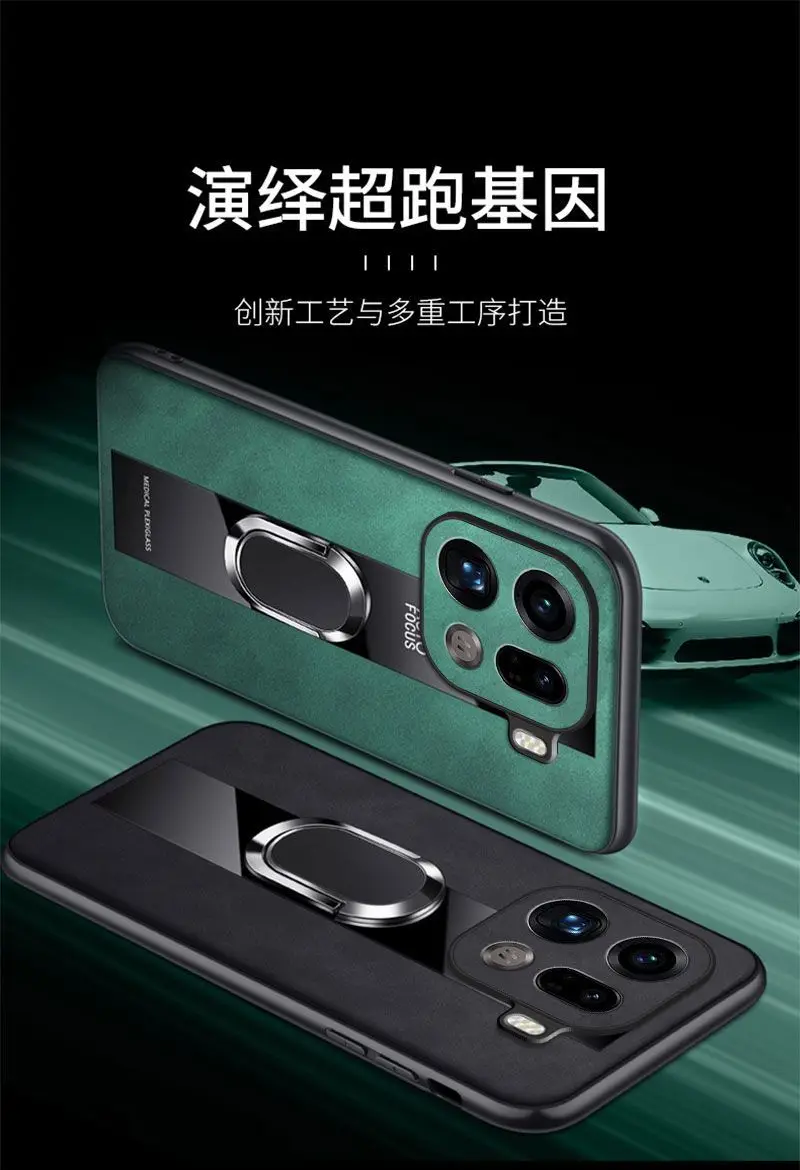 Funda para OPPO Find X9 Pro, Funda de teléfono con anillo magnético de cuero de lujo para OPPO Find X8 Pro X8 Ultra, Funda de silicona