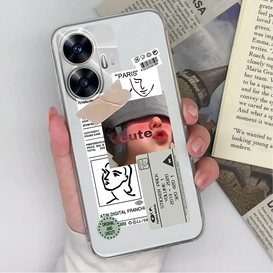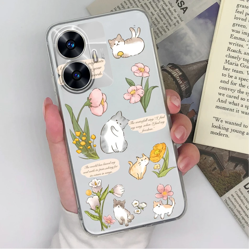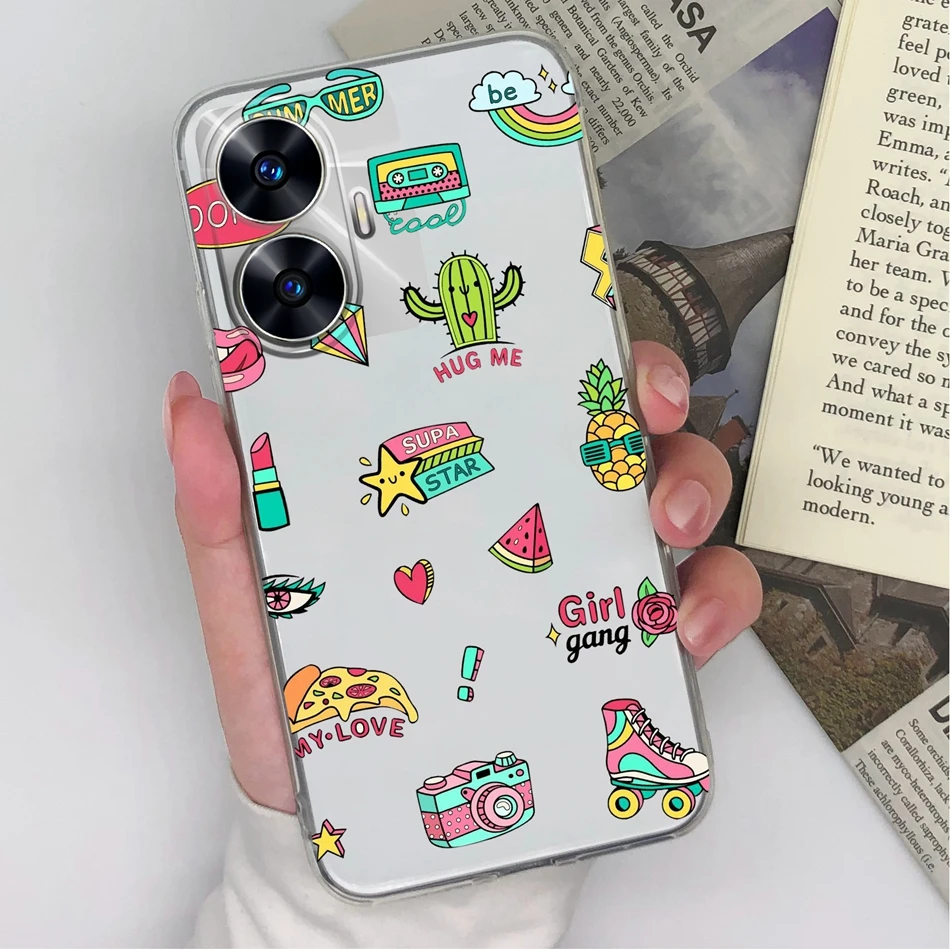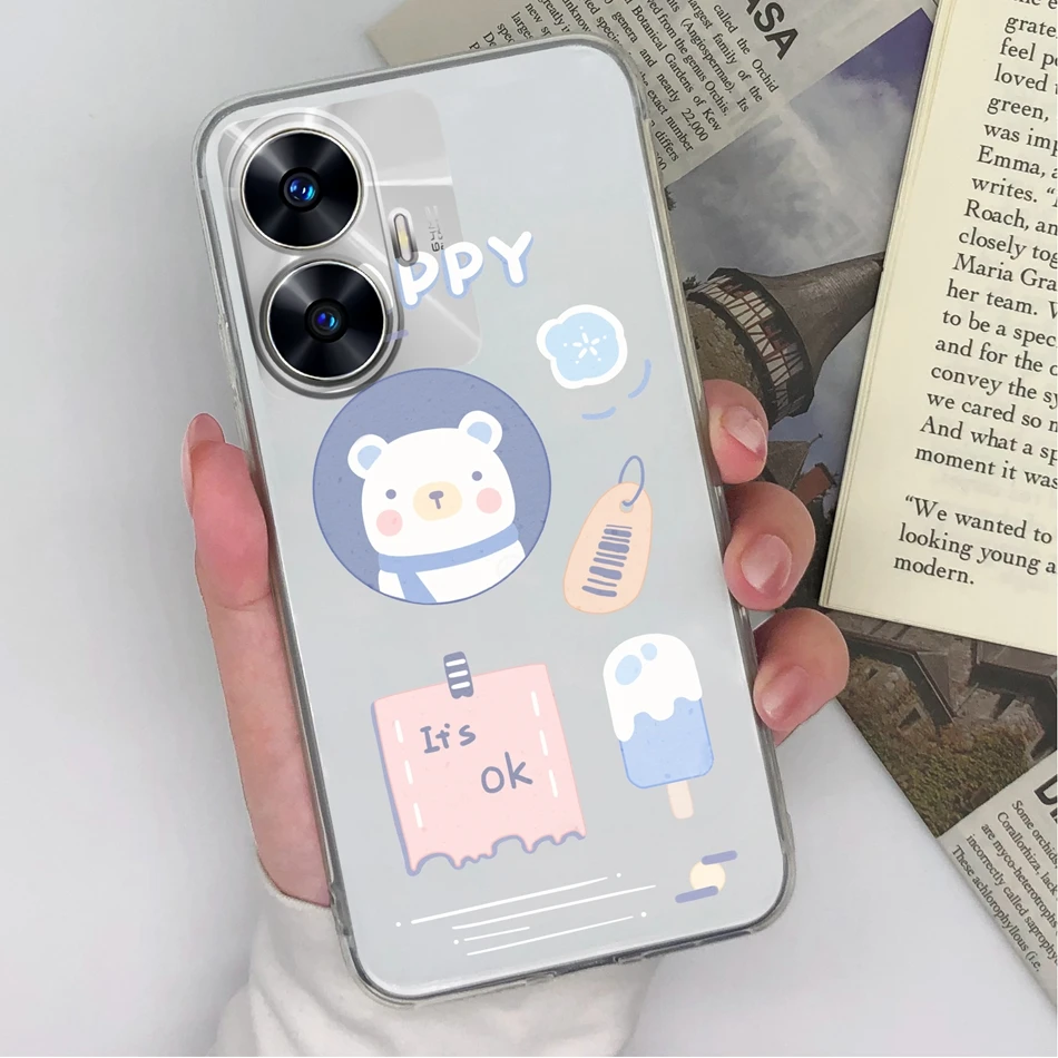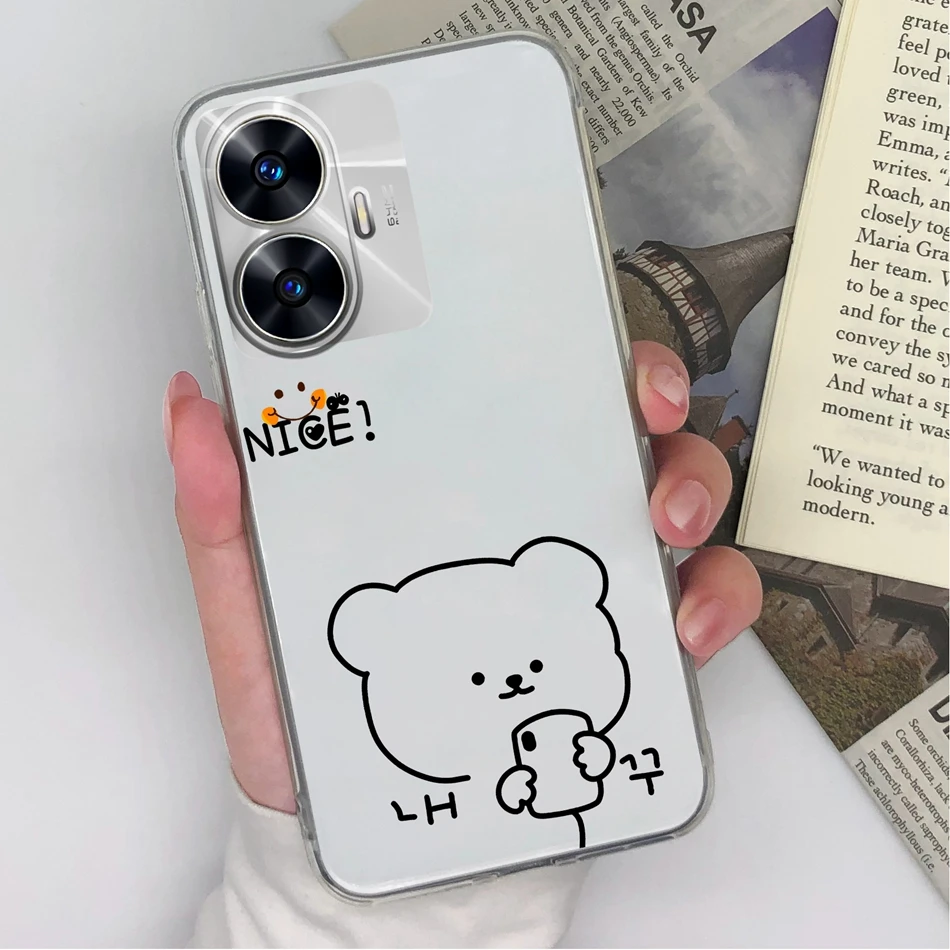 Funda protectora transparente de silicona para teléfono, funda protectora de silicona suave para Oppo, C55, 4G, parachoques, Oso de grafiti, para RealmeC55, C 55, Capa, 2, 1, 2, 5, 1, 2, 4G