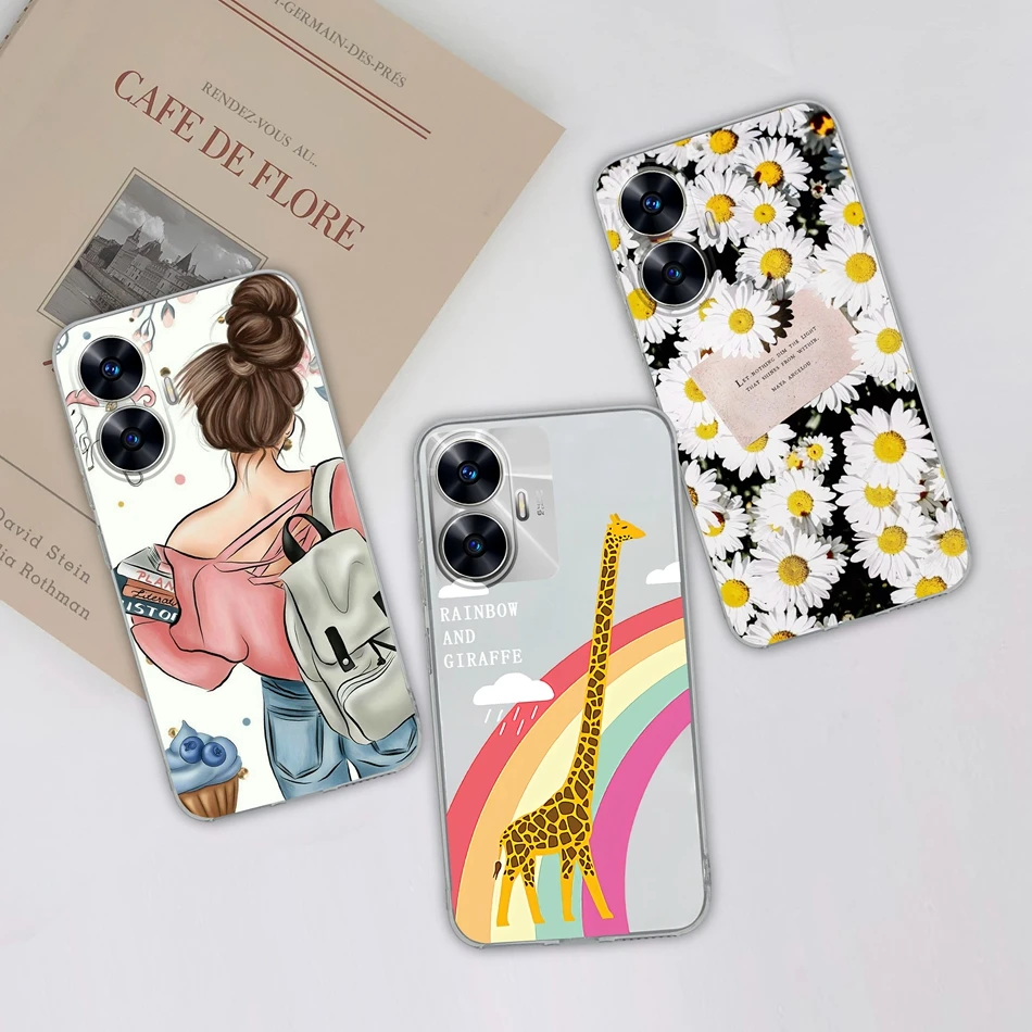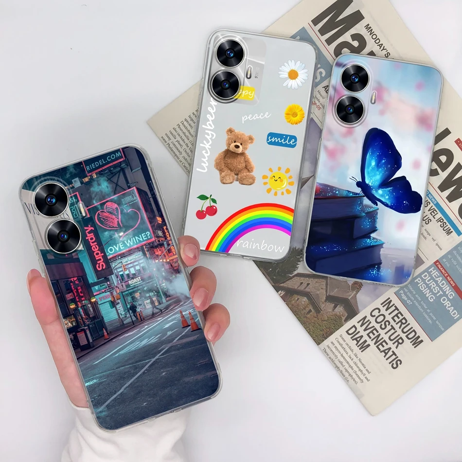 Funda protectora transparente de silicona para teléfono, funda protectora de silicona suave para Oppo, C55, 4G, parachoques, Oso de grafiti, para RealmeC55, C 55, Capa, 2, 1, 2, 5, 1, 2, 4G