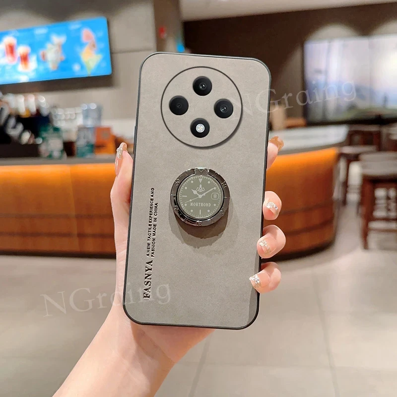 Funda para OPPO Reno 12F soporte de anillo de cuero de lujo funda protectora de cámara para OPPO Reno 12F parachoques a prueba de golpes