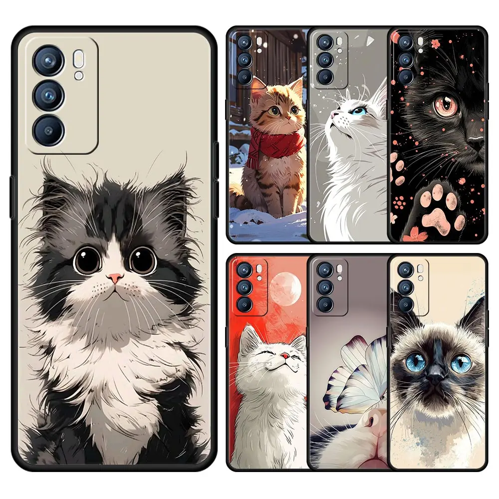 Comprar Funda para Oppo Reno13 Reno12 Reno11 F Reno10 Pro A54 A53 A95 A76 A74 A57 A98 A80 A79 5G A78 4G, funda para la vida diaria de gatos lindos