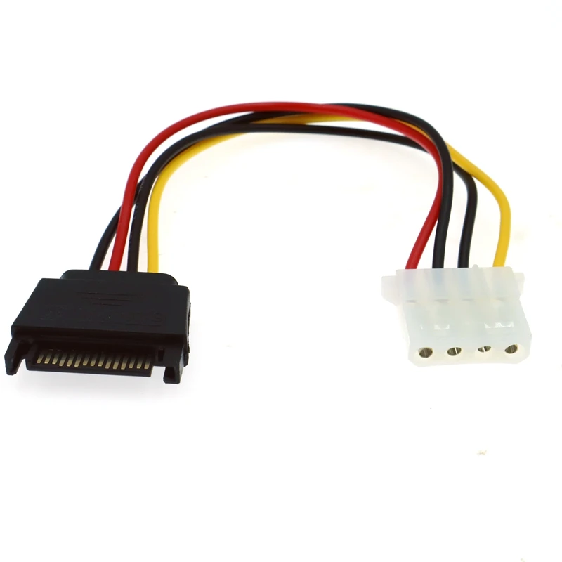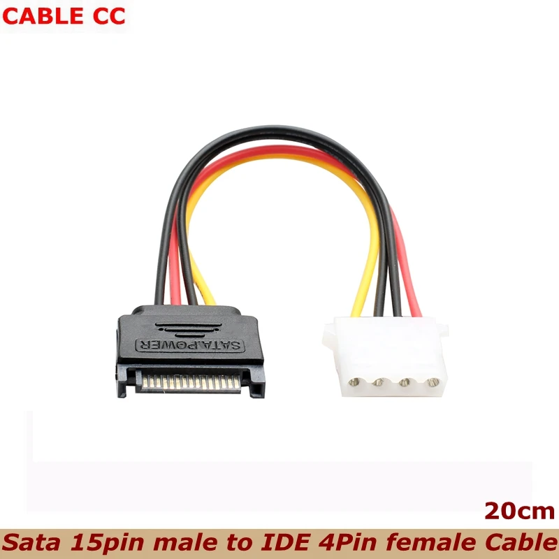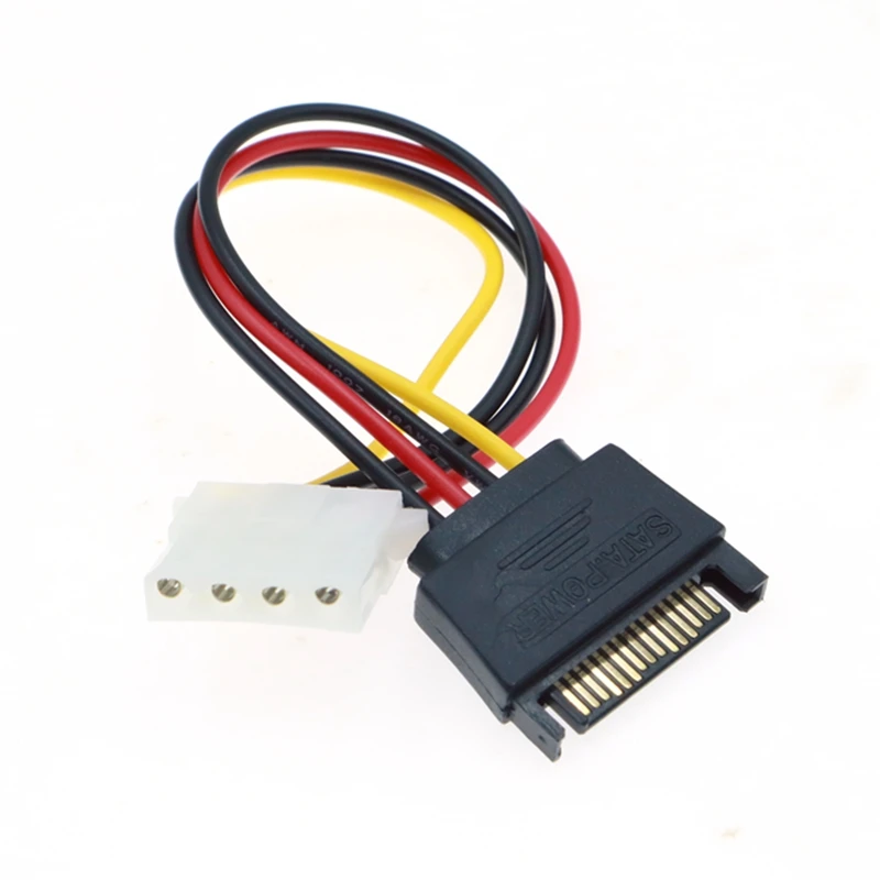 Comprar Funda de ordenador de 15 pines SATA macho a 4 pines Molex hembra IDE HDD, Cable de disco duro de alta calidad, 20cm