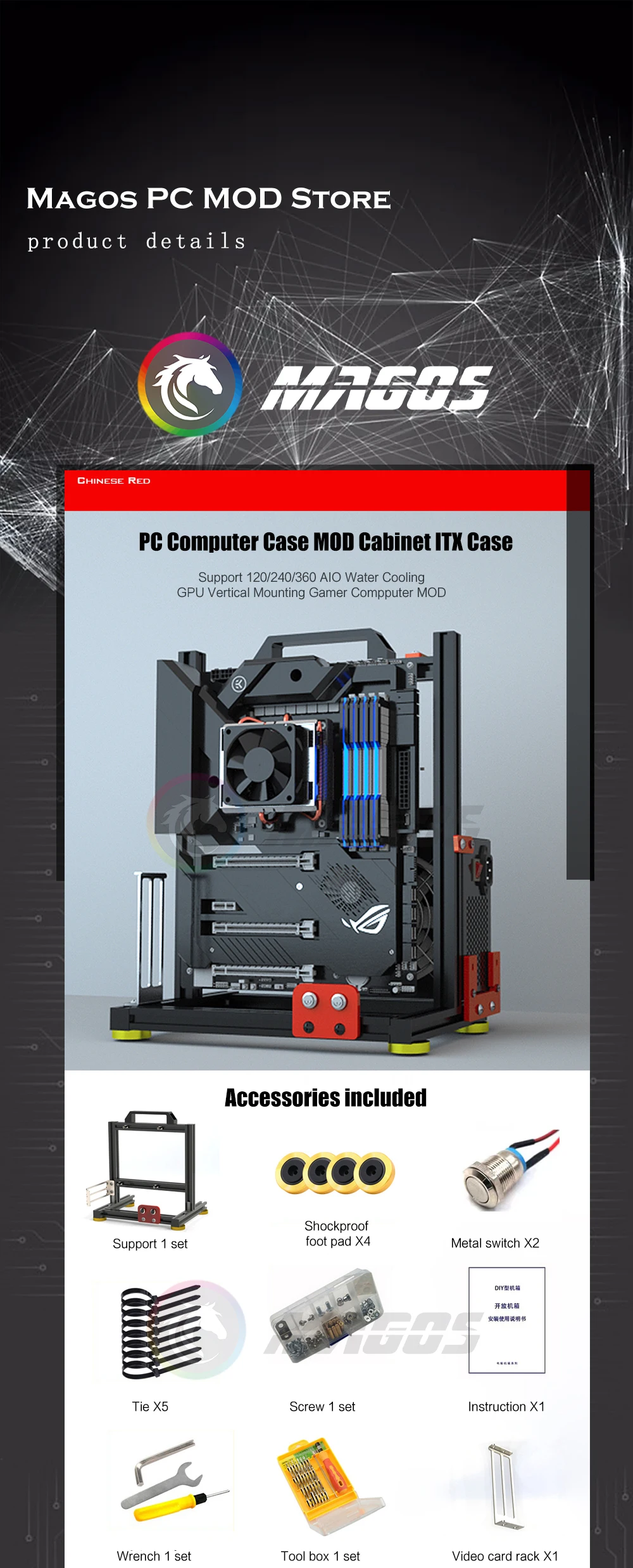 Comprar Funda de ordenador para PC, carcasa ITX compatible con 120/240/360 AIO, refrigeración por agua, GPU, montaje Vertical
