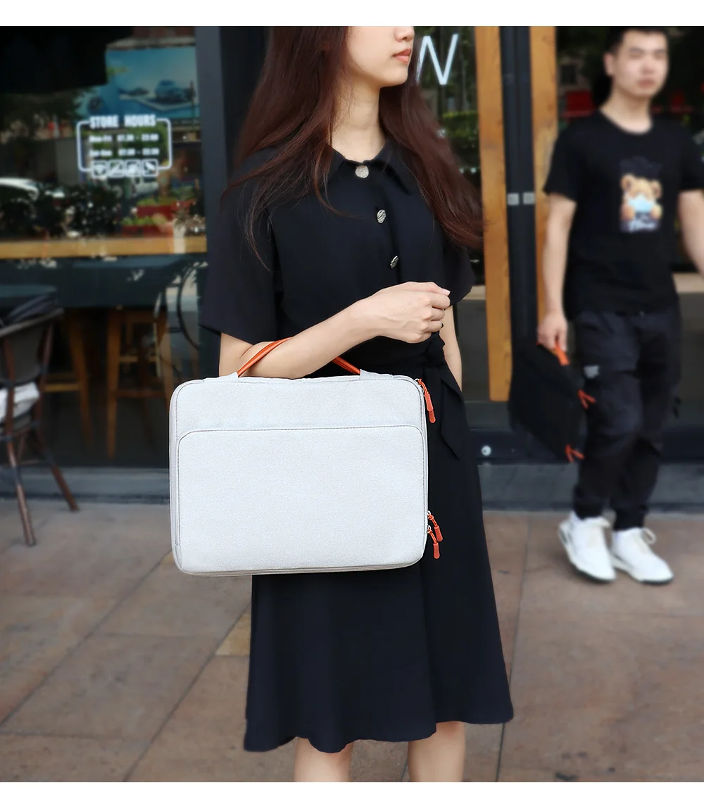 Diseño minimalista y práctico: El diseño aerodinámico, compacto y de tres compartimentos Es minimalista y práctico. Una Apertura de cremallera lateral especialmente destacada facilita el deslizamiento de su ordenador portátil. El maletín delgado y liviano se puede llevar o deslizar fácilmente en su mochila o estuche de viaje y es perfecto para negocios, escuela o viajes