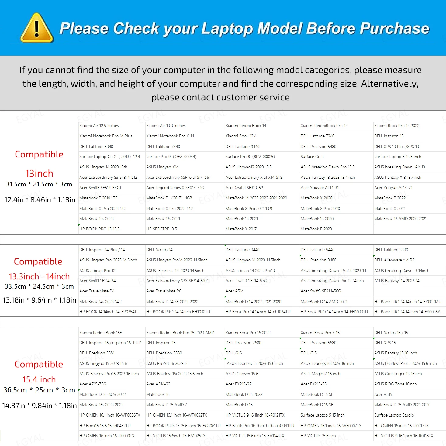 Antes de comprar, verifique la longitud, el ancho y la altura del tamaño de su computadora y realice la compra correcta. Si no está seguro del tamaño de su ordenador, está bien. Póngase en contacto con nosotros y le proporcionaremos una respuesta precisa