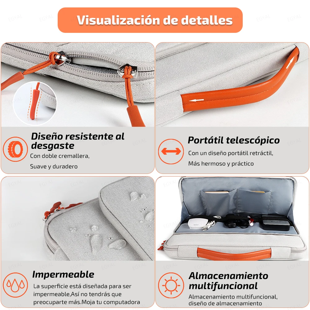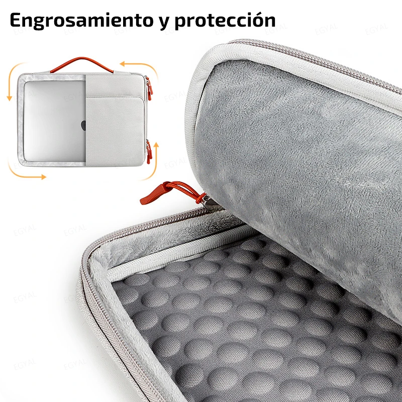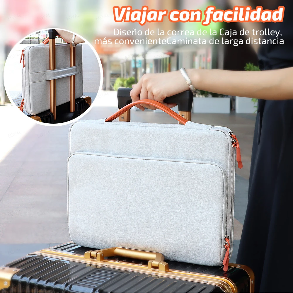 Protección integral de grado militar: Para proteger su dispositivo de caídas y golpes inevitables, EGYAL diseñó la bolsa para computadora portátil con tecnología CornerArmor en 4 esquinas, bordes de alta resistencia, y acolchado suave de alta densidad combinado para proporcionar una protección de 360 grados para su ordenador. El bolso de ordenador ha pasado la prueba de caída estándar militar en 2020 (MIL-STD-810H: 2019).