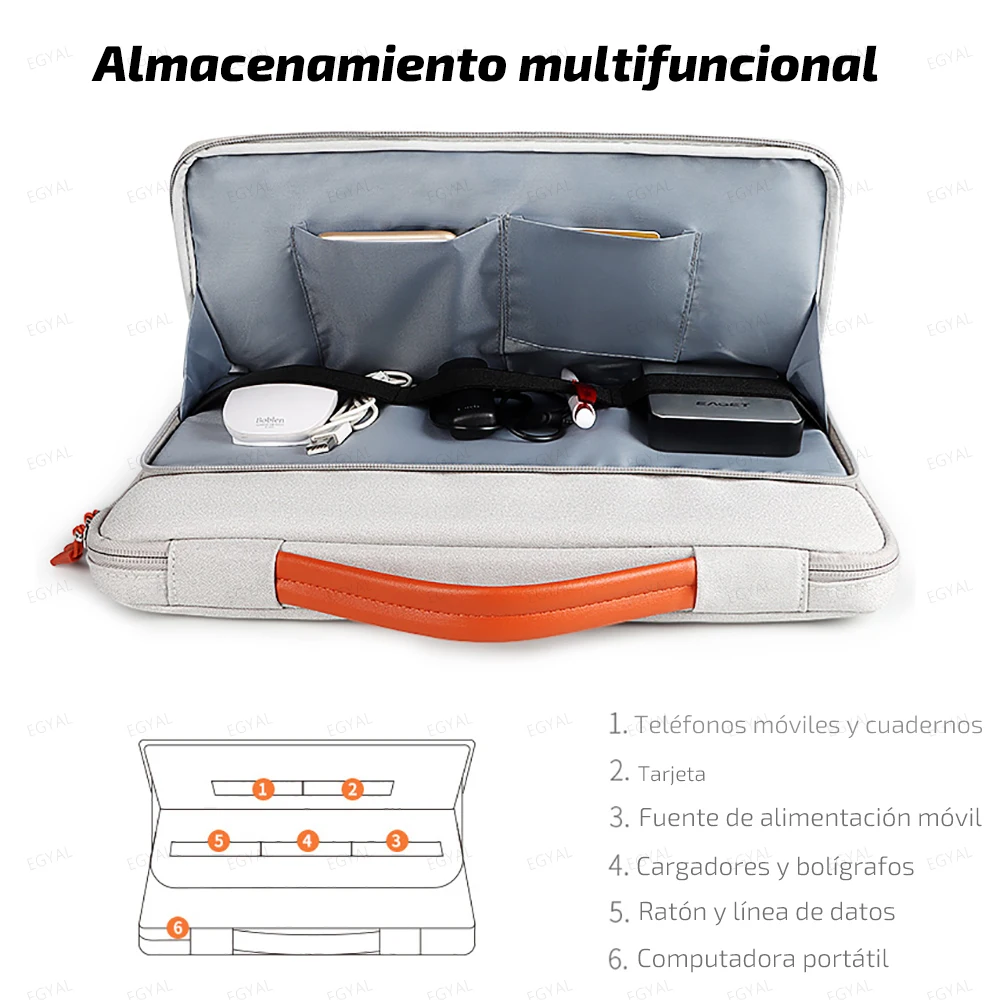 SUFICIENTE ESPACIO DE ALMACENAMIENTOExcepto el COMPARTIMENTO PRINCIPAL para su computadora portátil, esta funda de transporte también tiene DOS BOLSILLOS CON CREMALLERA FRONTAL EXTRA y UN COMPARTIMENTO GRANDE EN LA PARTE POSTERIOR para mantener iPad, mouse, dispositivos de carga pequeños, cable de alimentación, cables, auriculares, bolígrafos, discos duros, Banco de energía, etc.... CREMALLERAS DE METAL FUERTES se deslizan suavemente en dos vías: Para un acceso cómodo y rápido a su ordenador portátil y accesorios electrónicos. La bolsa profesional para portátil EGYAL mantendrá sus artículos seguros y bien organizados,