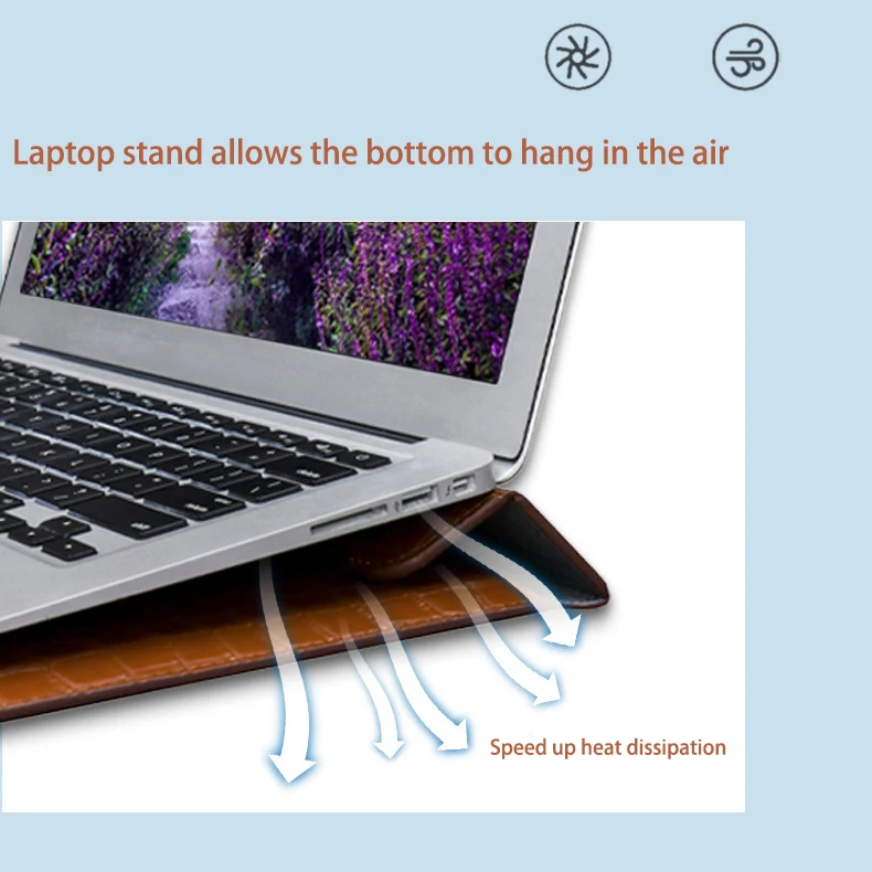 La funda se puede utilizar como soporte para ordenador portátil para disipar el calor de su ordenador portátil.