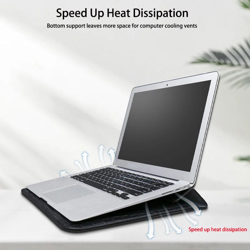 La funda se puede utilizar como soporte para ordenador portátil para disipar el calor de su ordenador portátil.