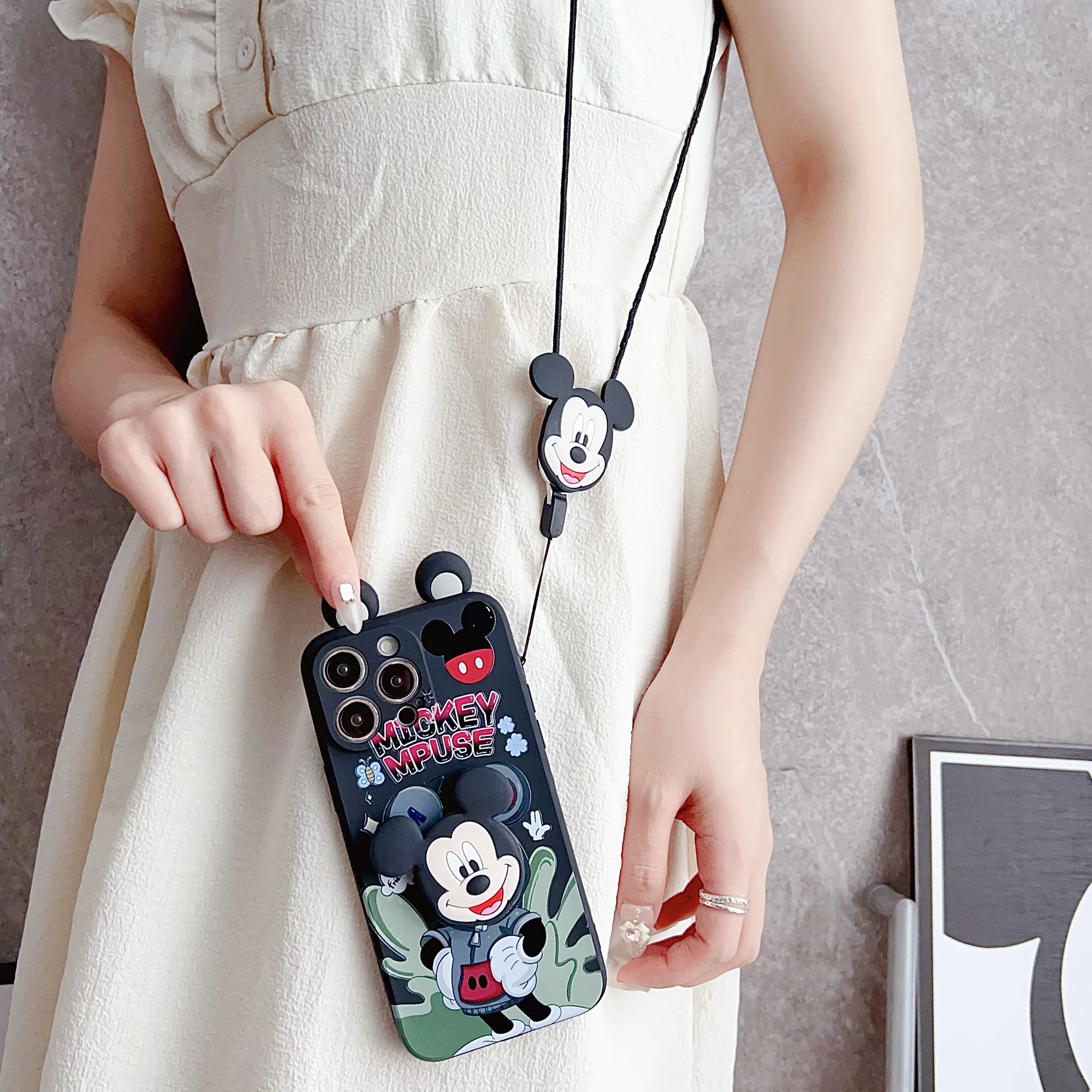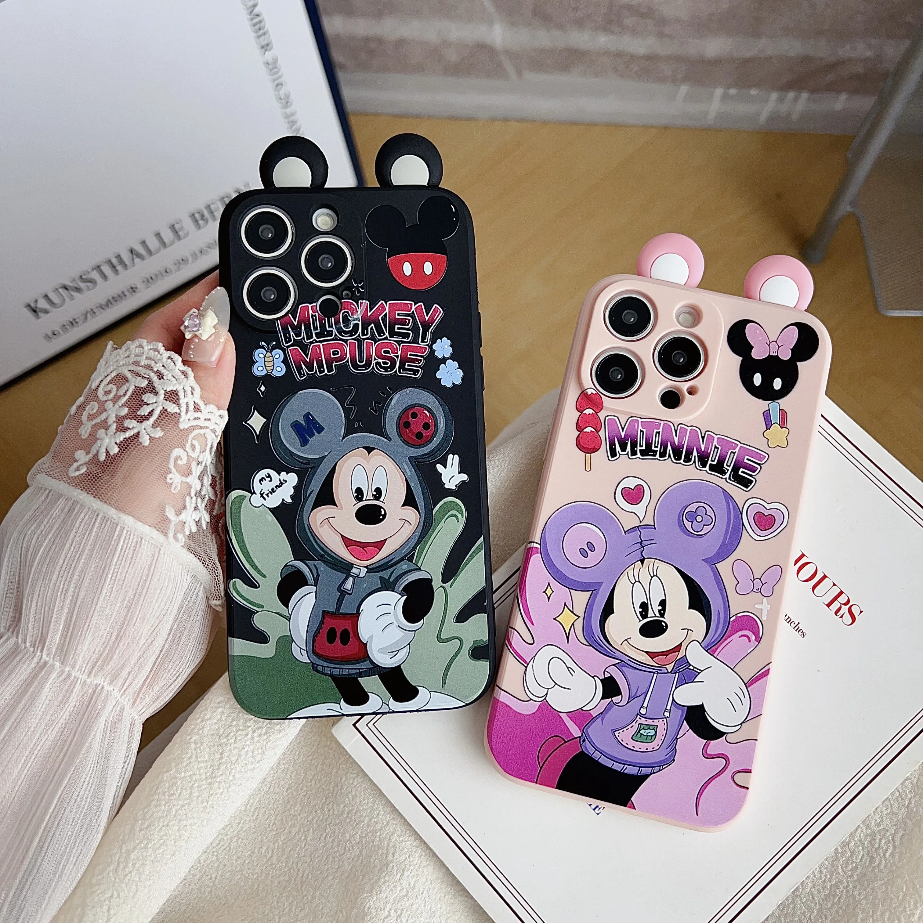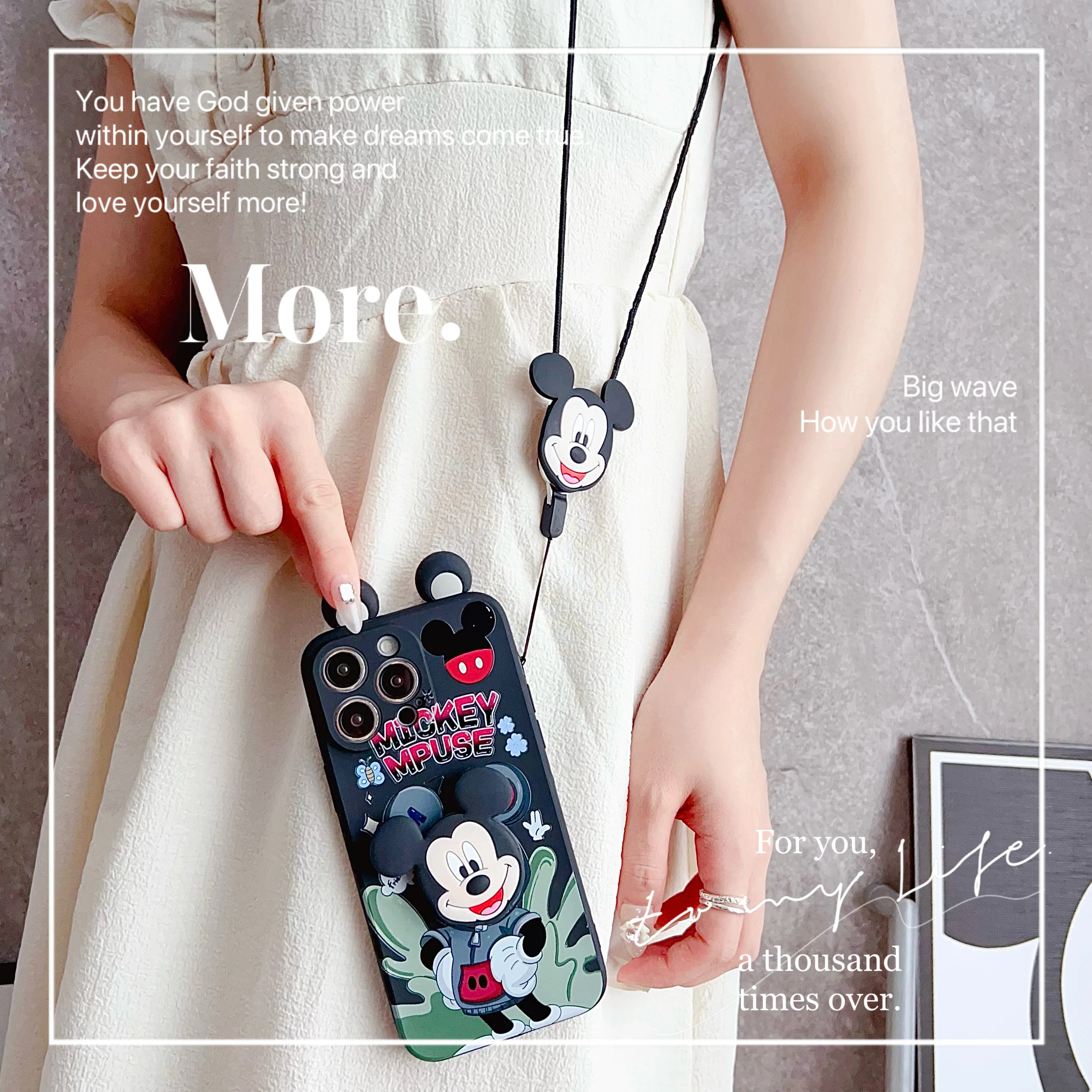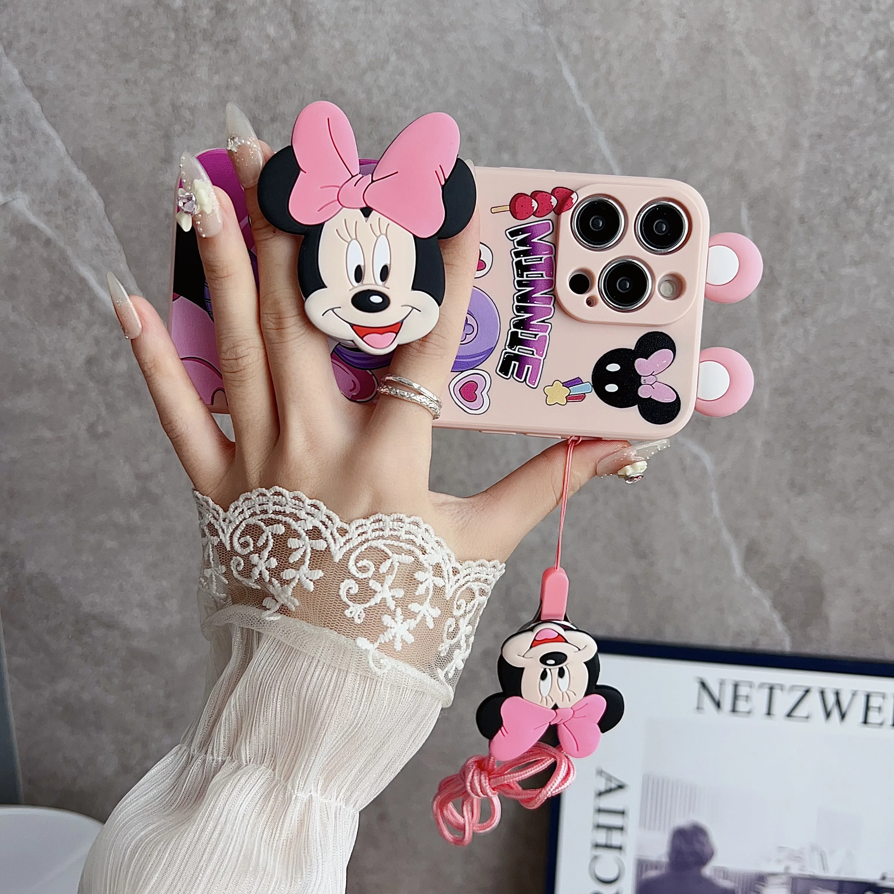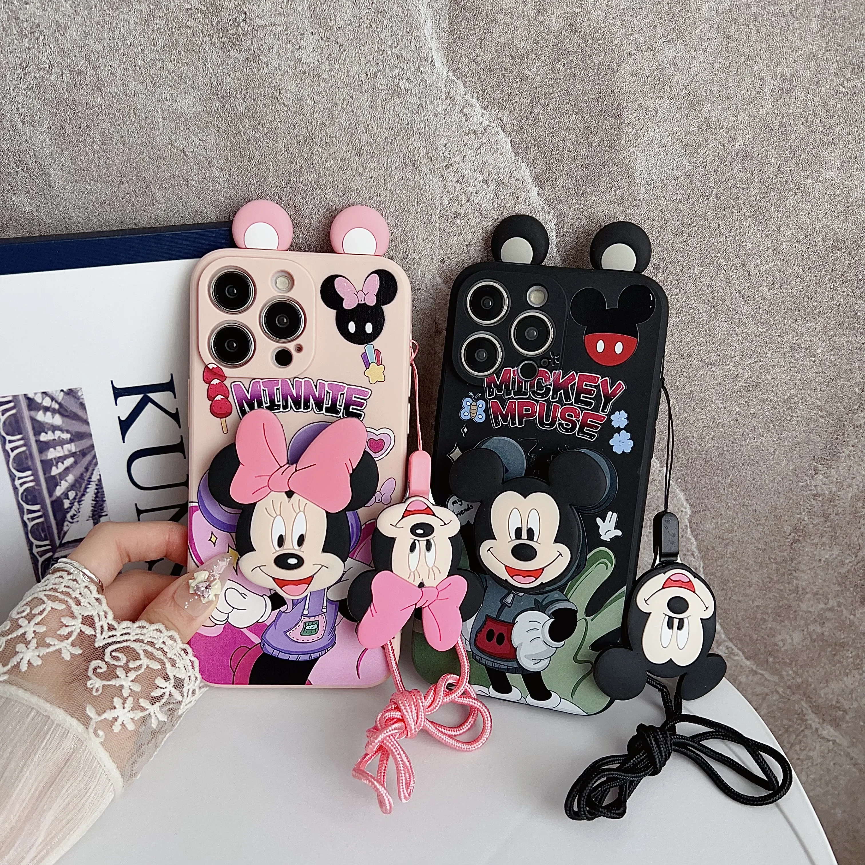 Funda con orejas de Minnie para Samsung Galaxy S7 S8 S9 S10 S20 S21 S22 S23 S24 Plus Ultra FE con cuerda de soporte