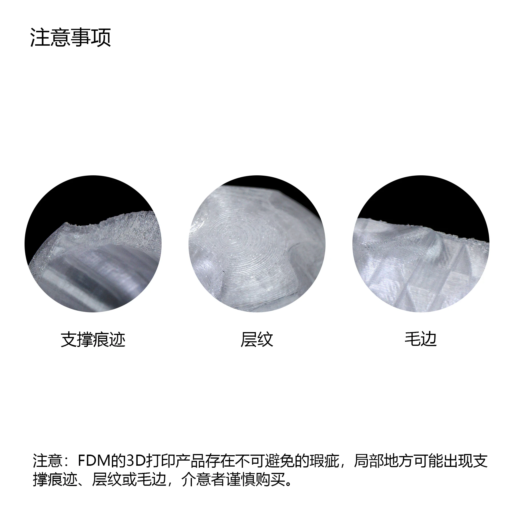 Nota: Los productos impresos en 3D de FDM pueden presentar imperfecciones inevitables, incluidas marcas de soporte, líneas de capas o bordes ásperos en ciertas áreas. Los posibles compradores que estén preocupados por dichos detalles deben tener cuidado al comprar.