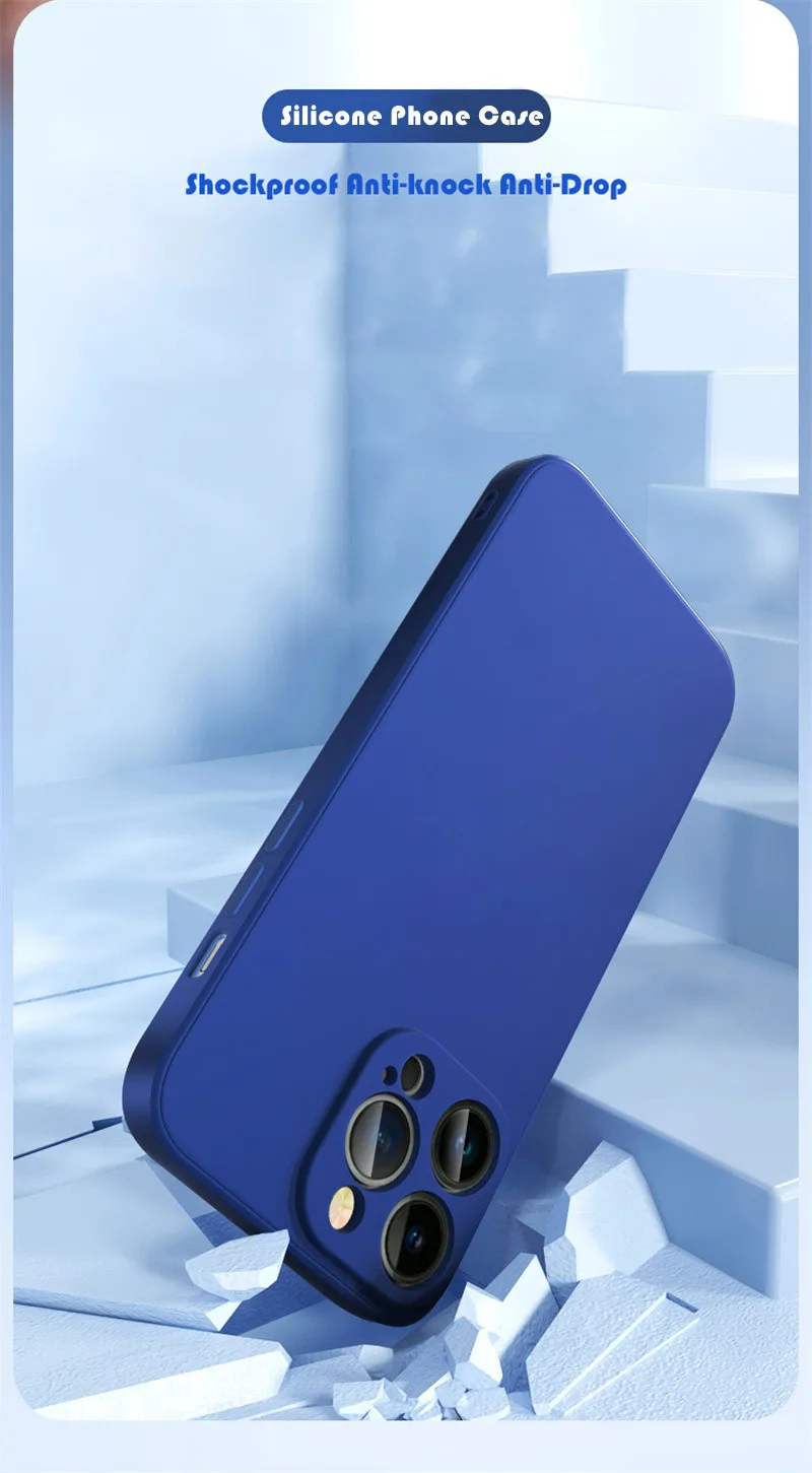 Funda Original de silicona líquida a prueba de golpes para iPhone, 11, 12, 13, mini, 15, 14 Pro Max, 14, 15 Plus, X, XR, Xs max, funda cuadrada suave