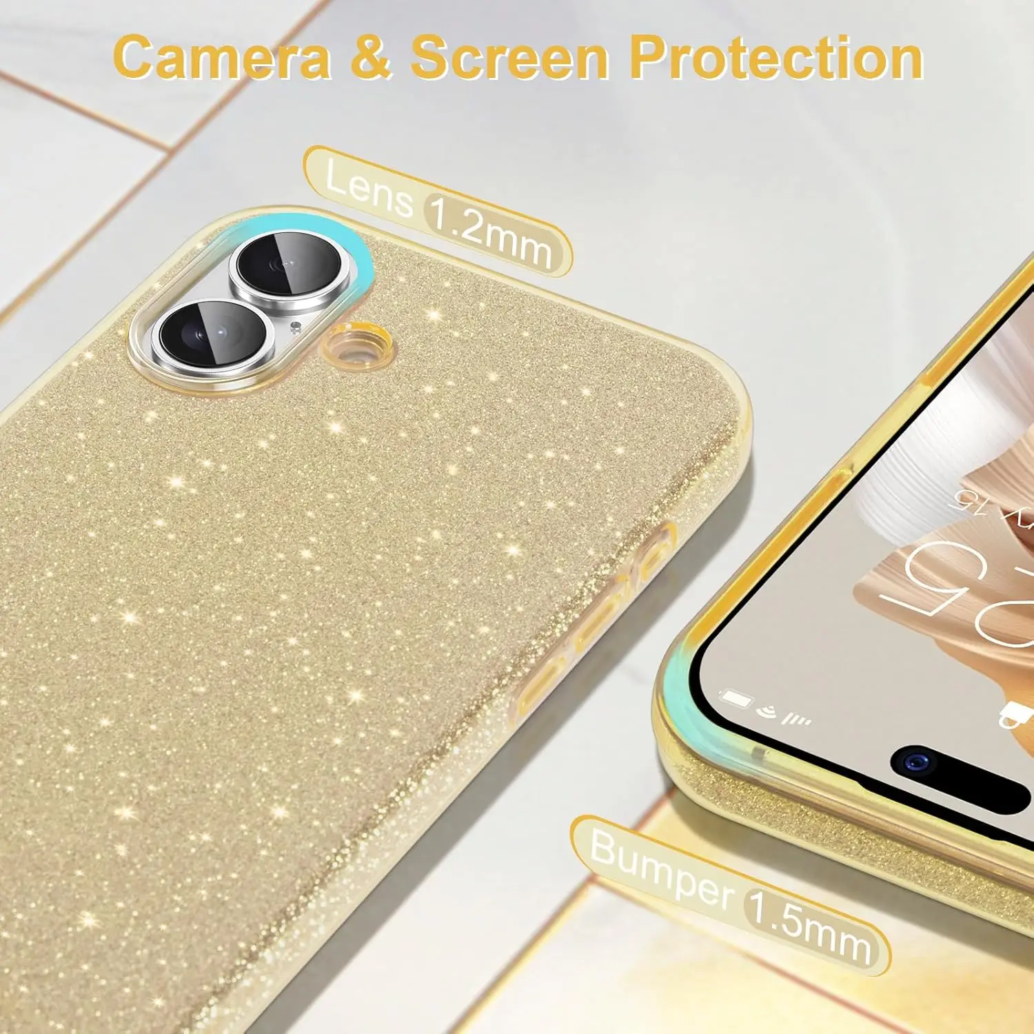 Gold Glitter Bling Case For iPhone 16 Pro Max 15 Plus 14 13 Mini 12 11 X XS XR SE 2022 2020 7 8 16Plus 6 Phone Cover Accessories